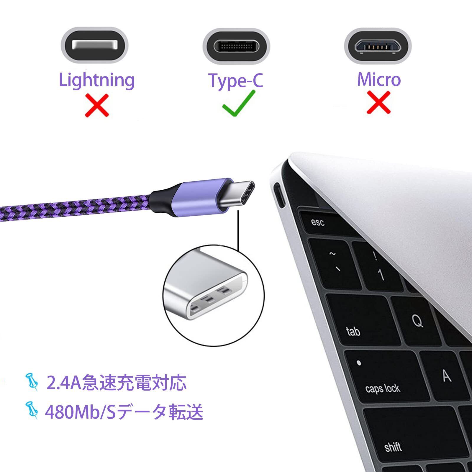 【高耐久Type C 充電ケーブル】外部には厳選された素材が優れたナイロンによって作られて、柔軟性がよく丈夫になります。10000回以上の折り曲げテストに合格しており、そのため劣化しにくく、内部には無酸素銅、アルミ箔などは耐磨耗性に優れて、長年にわたり御愛用頂けます。しかも、根元の部分にも耐久性を考慮するように、断線しにくい丈夫なつくりの充電コードです。充電ケーブルが0.9m(3ft)の長さで、車載、寝室、ソファ、バルコニーなどの各シーンにちょうどいい長さです。