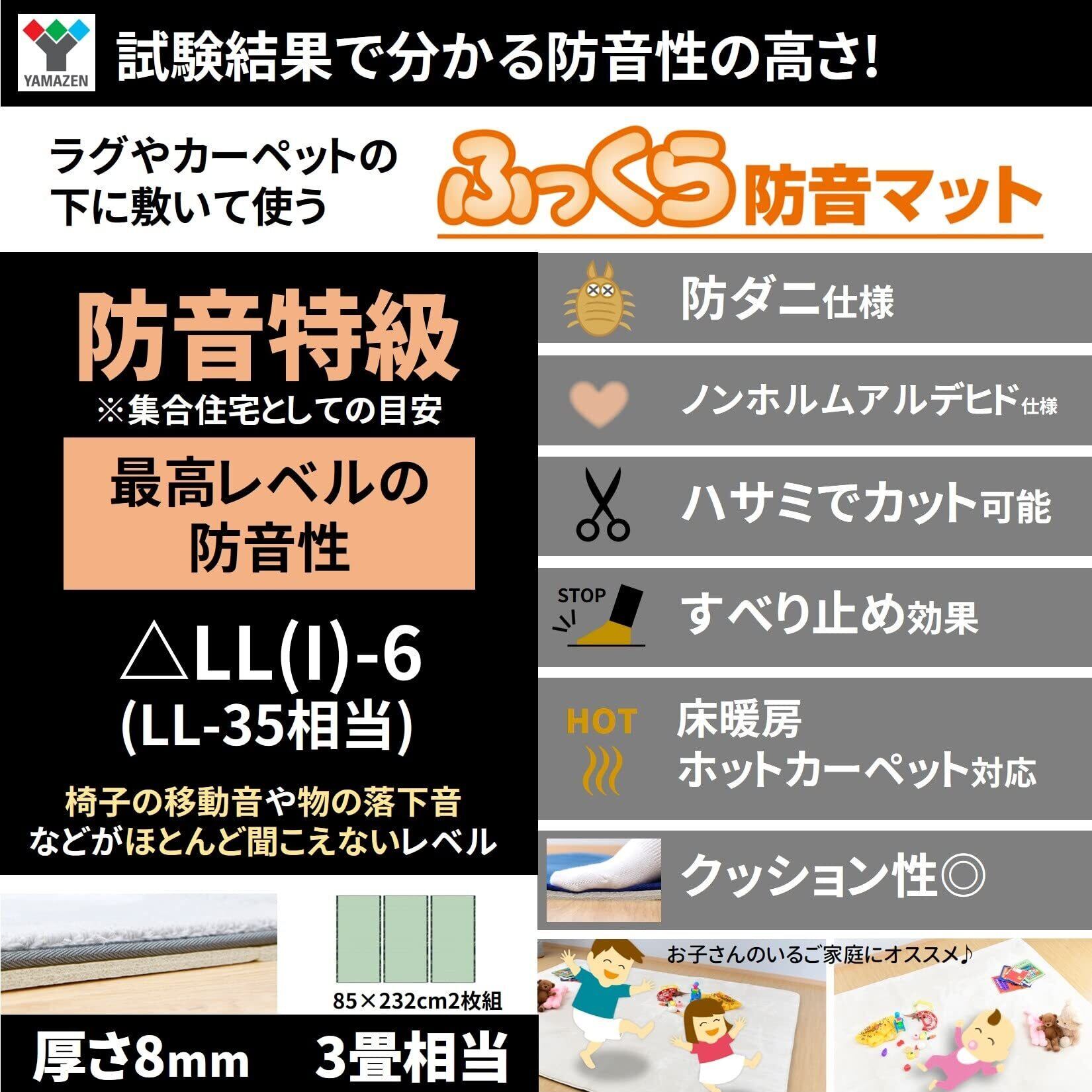 山善(YAMAZEN) 防音マット 防音特級 △LL(I)-6 LL-35相当 厚さ8mm 3畳相当 (85×232cm2枚組) 防ダニ ハサミで切れる すべり止め 床暖房・ホットカーペット対応 折りたたみ 足音 騒音 アイボリー FBM8-3