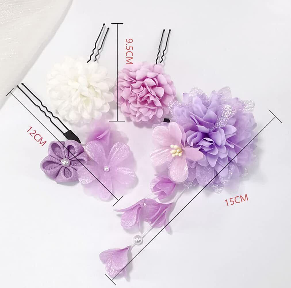 和風髪飾り 高級造花 着物 和装 浴衣 振り袖 ヘアアクセサリ 成人式舞妓風 卒業式 人式 結婚式 七五三 和装小物 つまみ細工 ヘアクリップ フラワー 髪留め (パープルpurple)