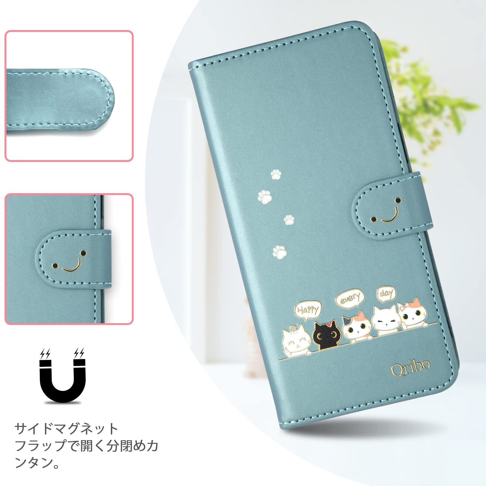 Qribo Aquos wish3 ケース 手帳型 アクオス wish3 ケース 手帳型 アクオス wish3 カバー Aquos wish3 A302SH ケース シンプルなのに可愛いデザイン エンボス加工猫柄 うれしい気持ち 5.7インチ対応 アクオスウィッシュ3 ケース SH-53D A302SH カバー wish3 スマホケースアクオスwish3 Aquos SH-53D ケース 薄型 防水 の耐久性 滑り防止 美しい 贈り物 友達 - 青