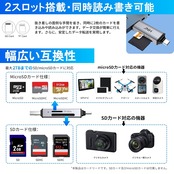 【2枚カード同時に読み書き】SDスロットとmicro SDスロットを備え、2つのカードに同時に読取と書込を行うことが可能で、カードを差し替える手間が必要ありません。