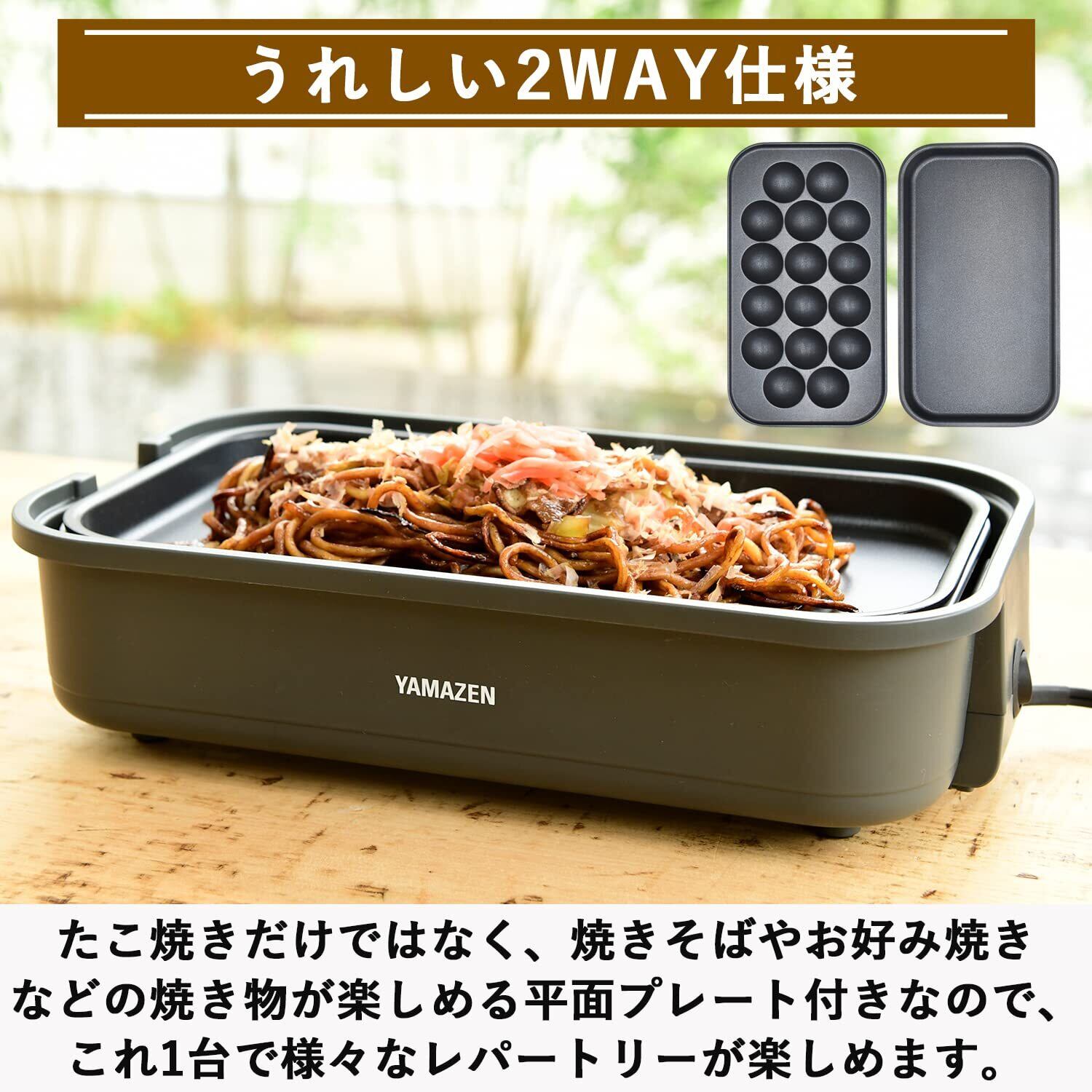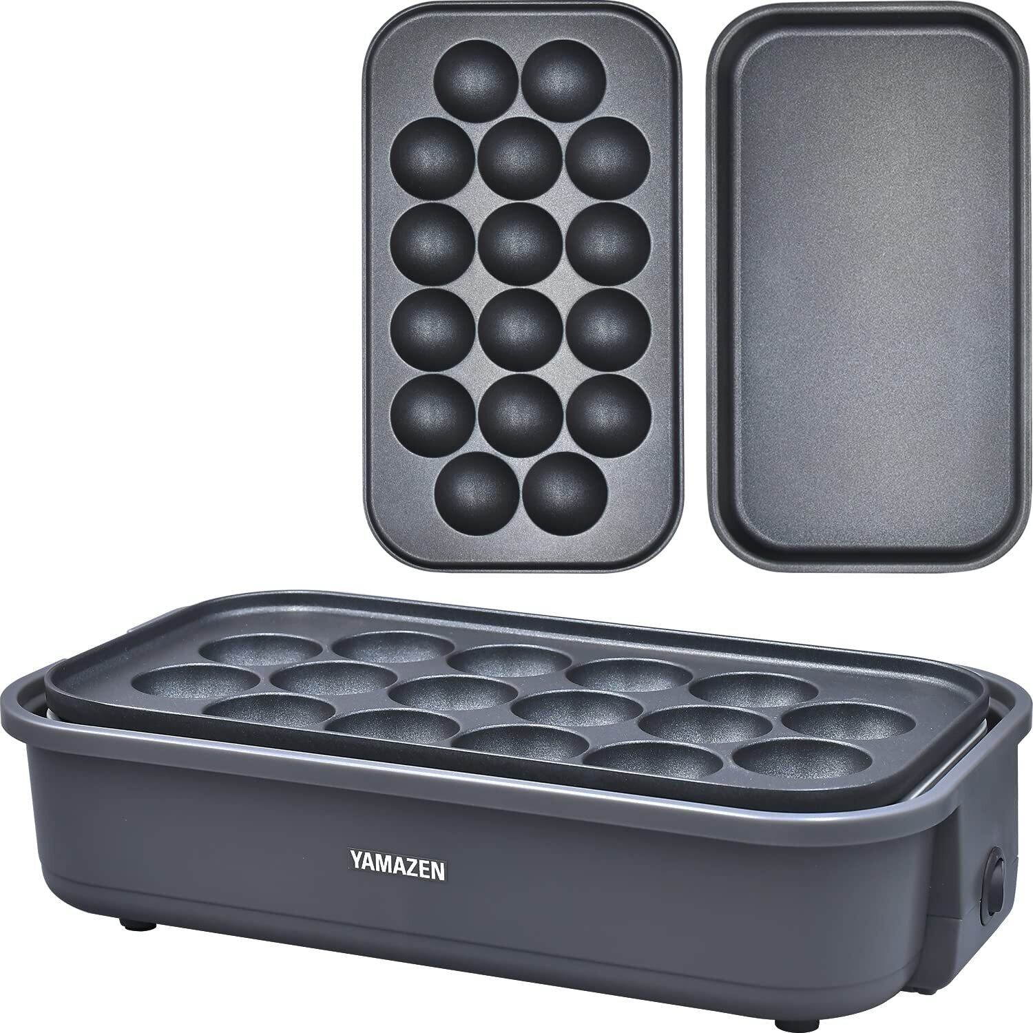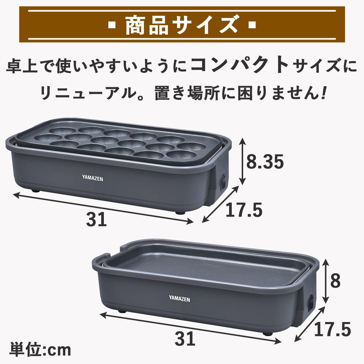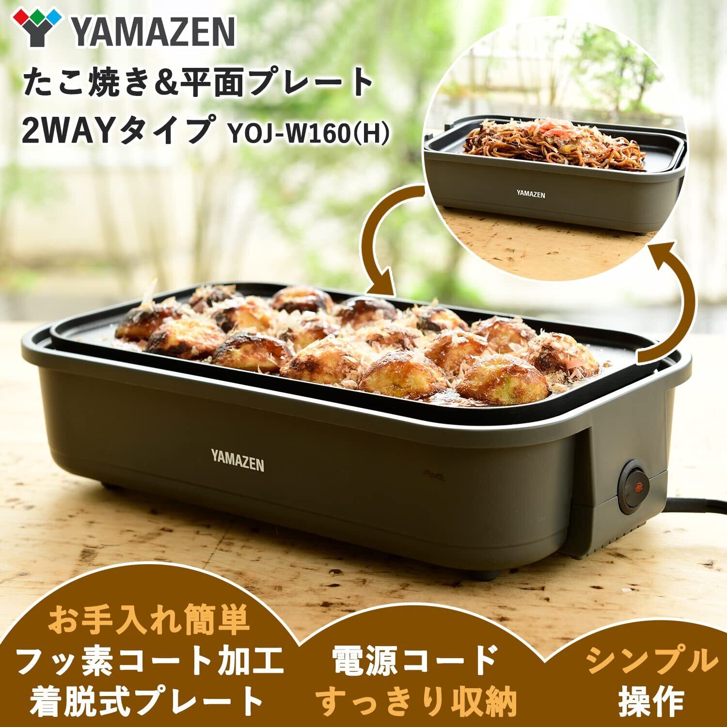 [山善] たこ焼き器 2WAY 平面プレート付 16穴 卓上 着脱式プレート フッ素コーティング 簡単お手入れ ワンタッチ操作 コードすっきり収納 コンパクト グレー YOJ-W160(H)