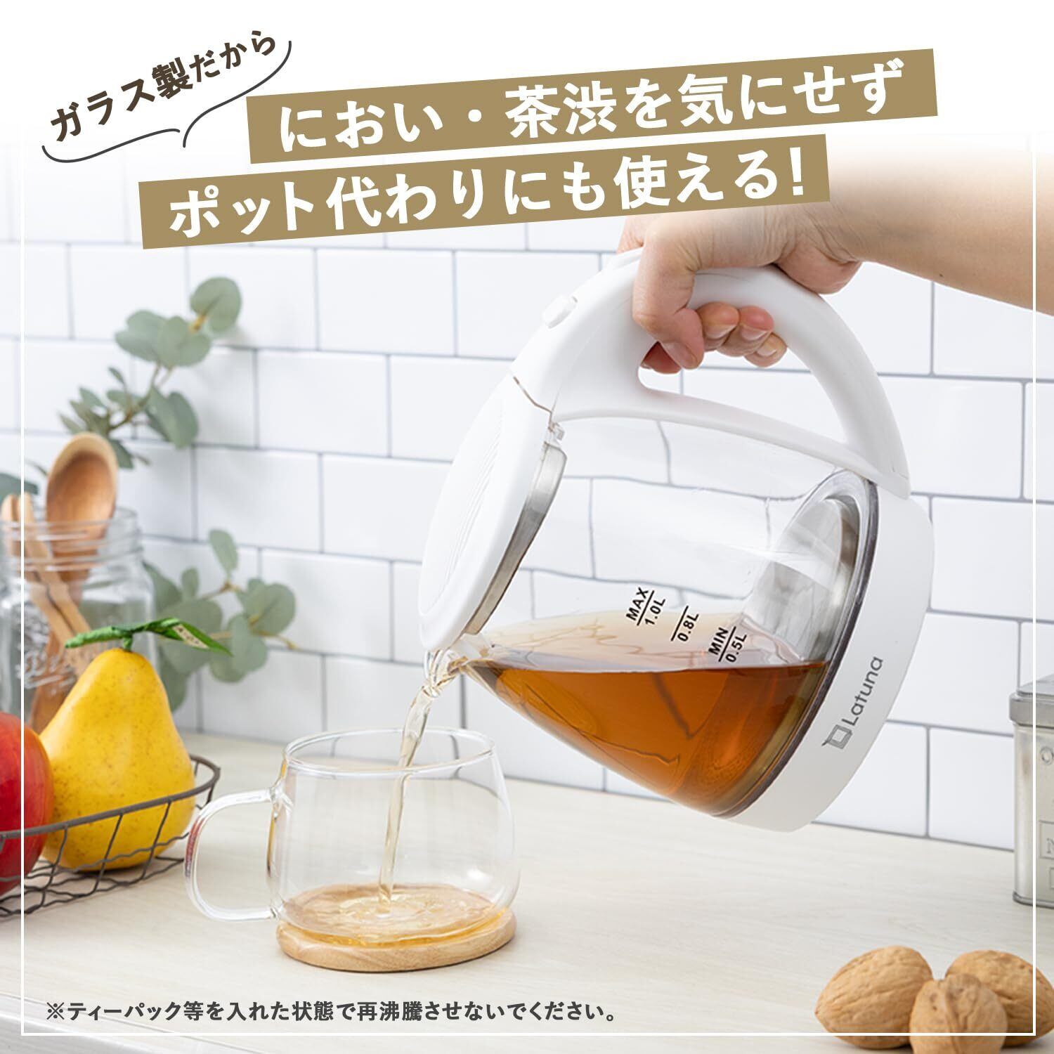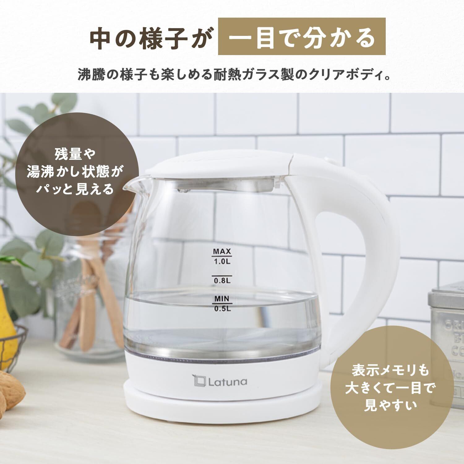 【✨サポート・アフターフォロー充実✨】Latunaブランドのガラス製電気ケトルは、1年間のメーカー保証がついております。商品の品質には万全を期しておりますが、万が一商品不具合である場合、交換または返品返金対応を迅速にさせていただきます。商品を使用する際に何かご不明点がございましたら、お気軽にお問い合わせください。取扱説明書にご使用上の注意など記載しておりますので、保証等を含む詳細はそちらを参考にしていただきますようお願い申し上げます。