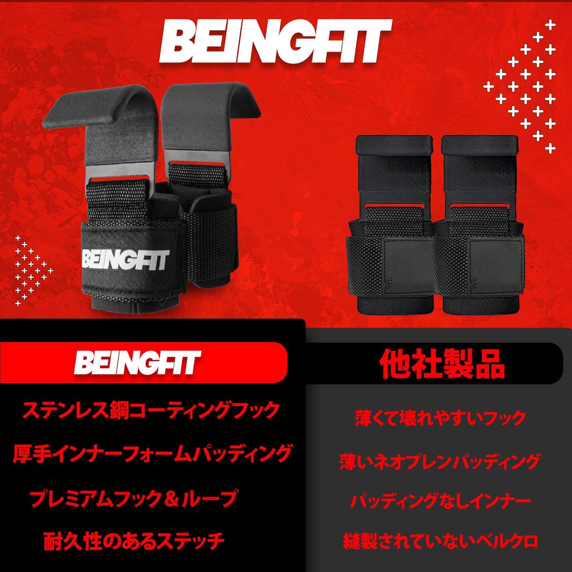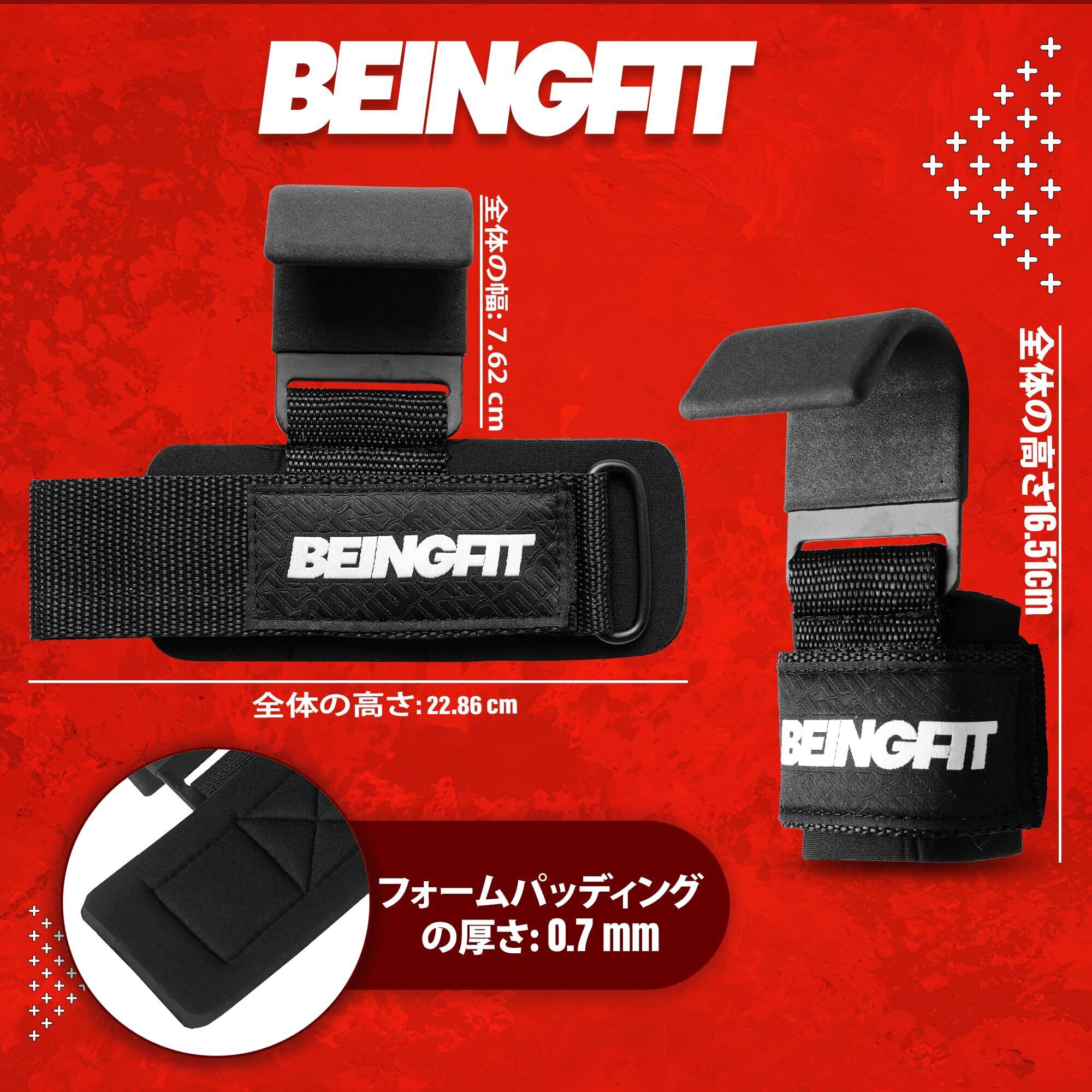 Beingfit ウエイトリフティングフック - 握力サポート&プロフェッショナルグリップ強化、耐久性&快適性向上、男女兼用フィットネスアクセサリー