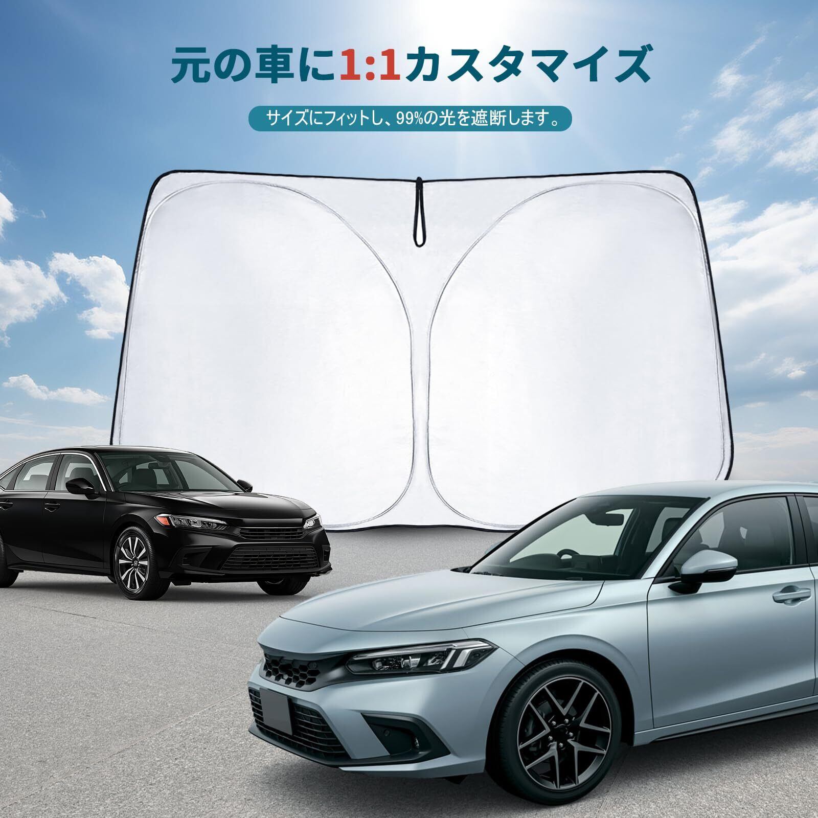 【日よけ対策&劣化防止】シビック サンシェード fl1はアルミホイル反射層を加工され、駐車時の日光から車を守り、車内部品を保護します。しっかり太陽光から車内を守ってくれるため、見た目だけじゃなく機能性もあり、夏場必須アイテム!!防犯対策、車内、屋外、お昼寝に最適!サンシェード シビック fl4
