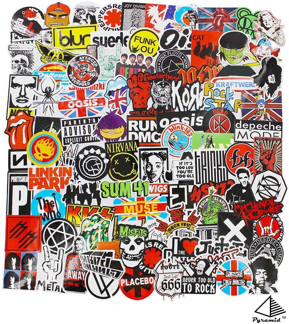 バンドステッカーパックロックンロールステッカーデカールラップトップ車ギターバンパーパンククラシックビニール防水落書き100個