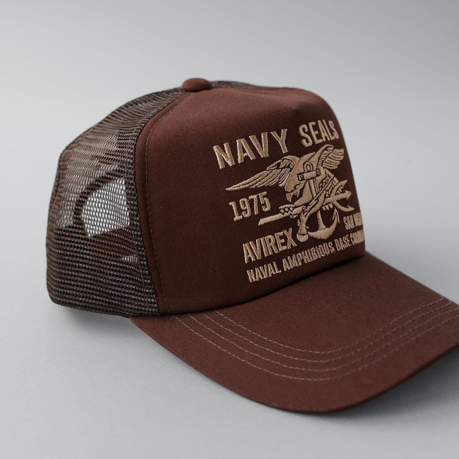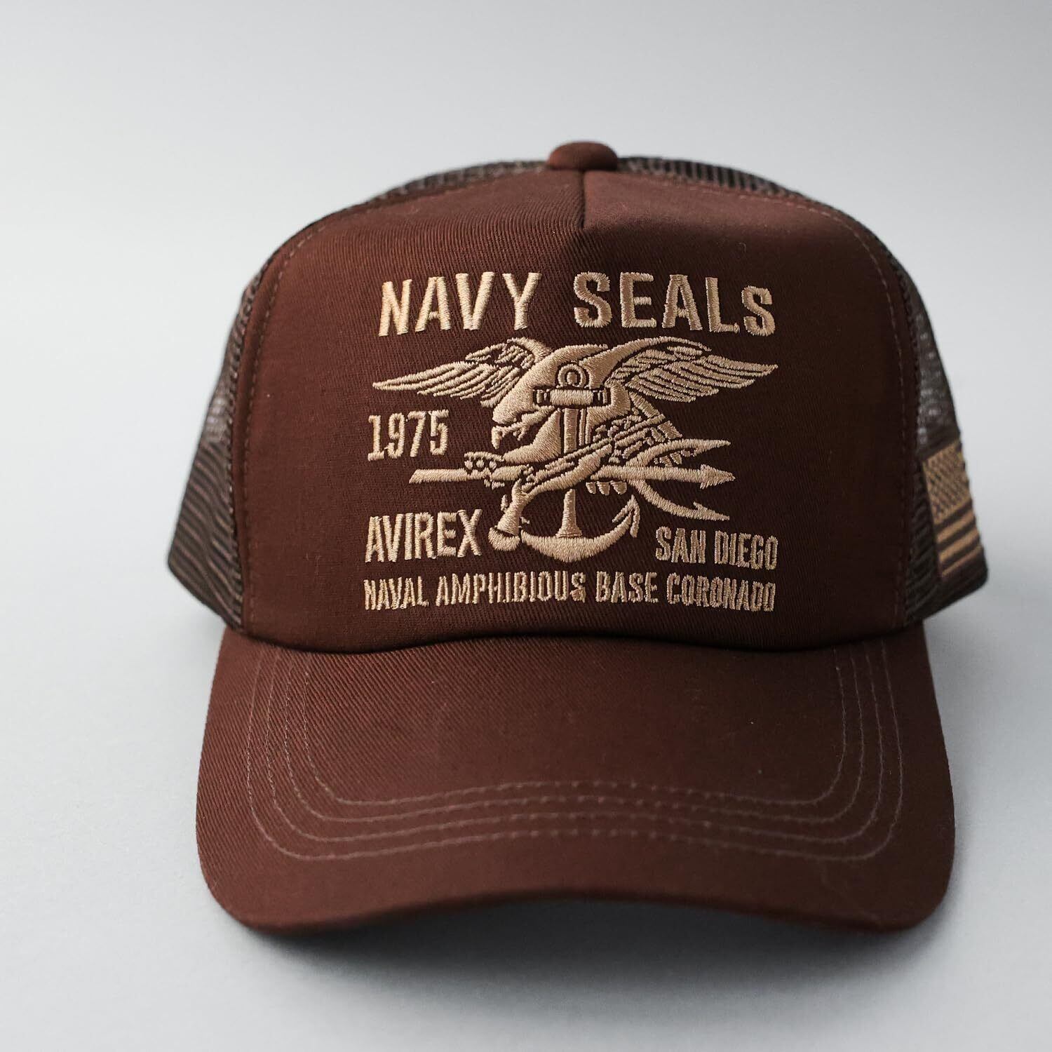 [アヴィレックス] 2サイズ展開 スタンダード ミリタリー メッシュキャップ XL LL 大きいサイズ 帽子 キャップ メンズ ビッグサイズ 夏 (XL, NAVYSEALSブラウン)