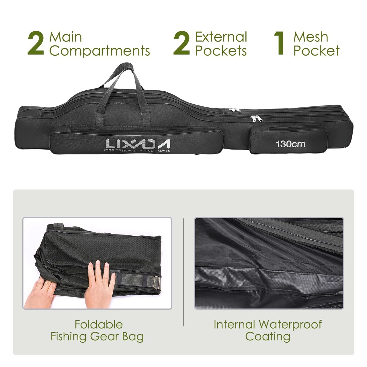 Lixada 釣り竿ケース 150cm ポータブル折りたたみ式釣り竿ケース 釣り竿リール収納バッグ 釣りギアオーガナイザー ロッドケース