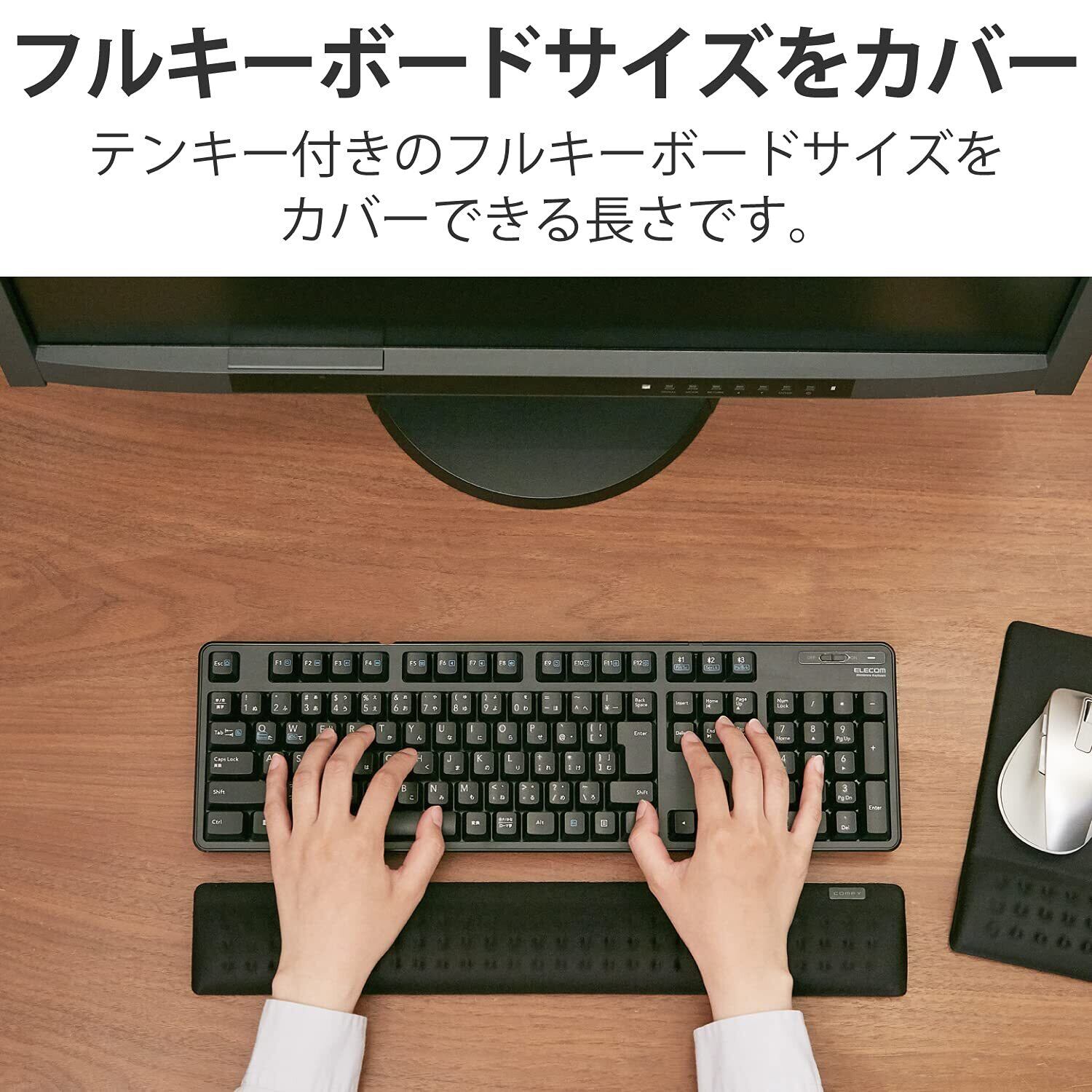テンキー付きのフルキーボードサイズをカバーできる長さです。