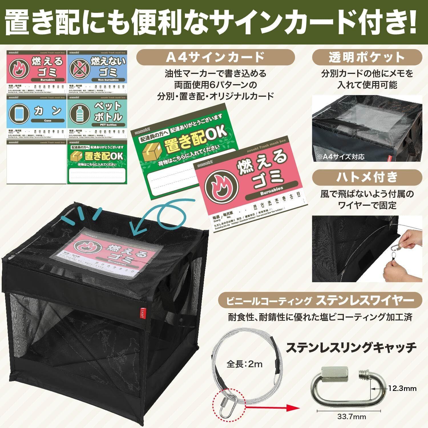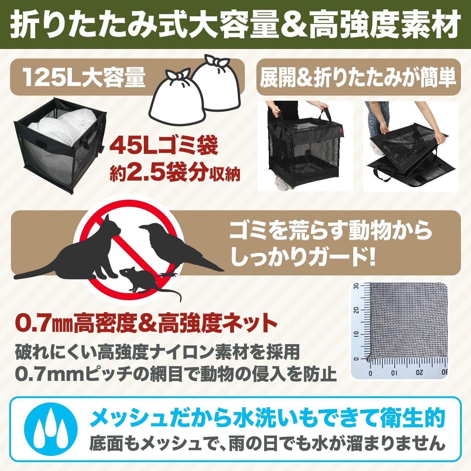 [ネセクト] 折りたたみゴミ収集ボックス 125L ワイヤー付 置き配ボックス ゴミネット カラスよけ 収集庫 超軽量 戸別回収 [日本企画3年保証]