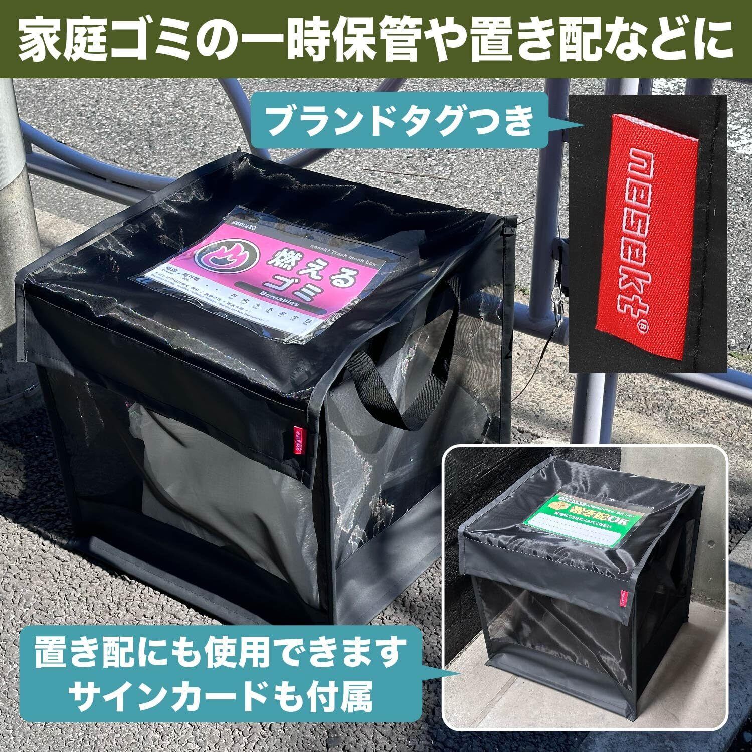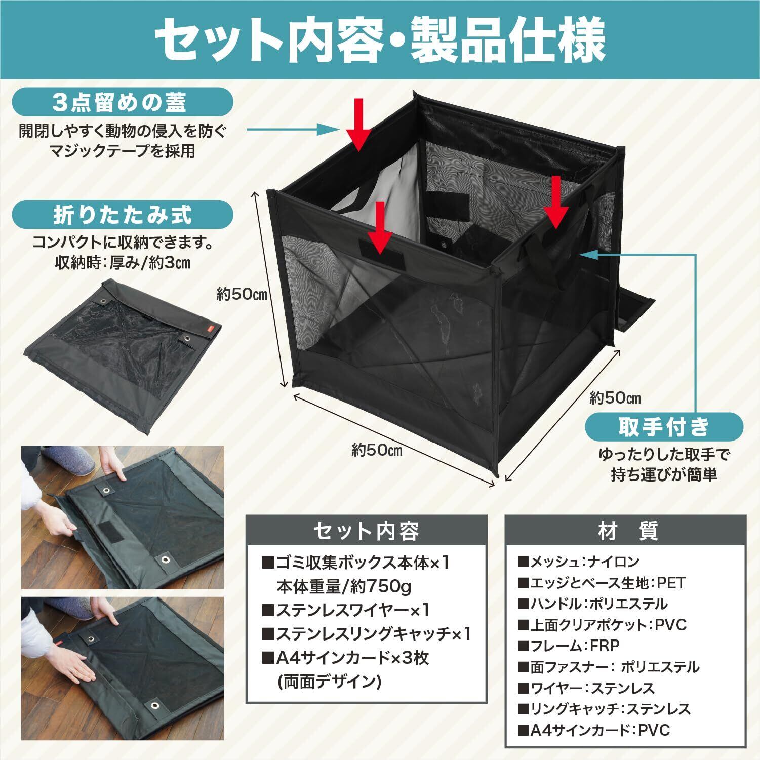【タフな強力ネット素材を採用】素材は一般的なネットより圧倒的に強度の高いPET(ポリエチレンテレフタレート)を採用。カラスや猫、小動物などからゴミをしっかり守ります。