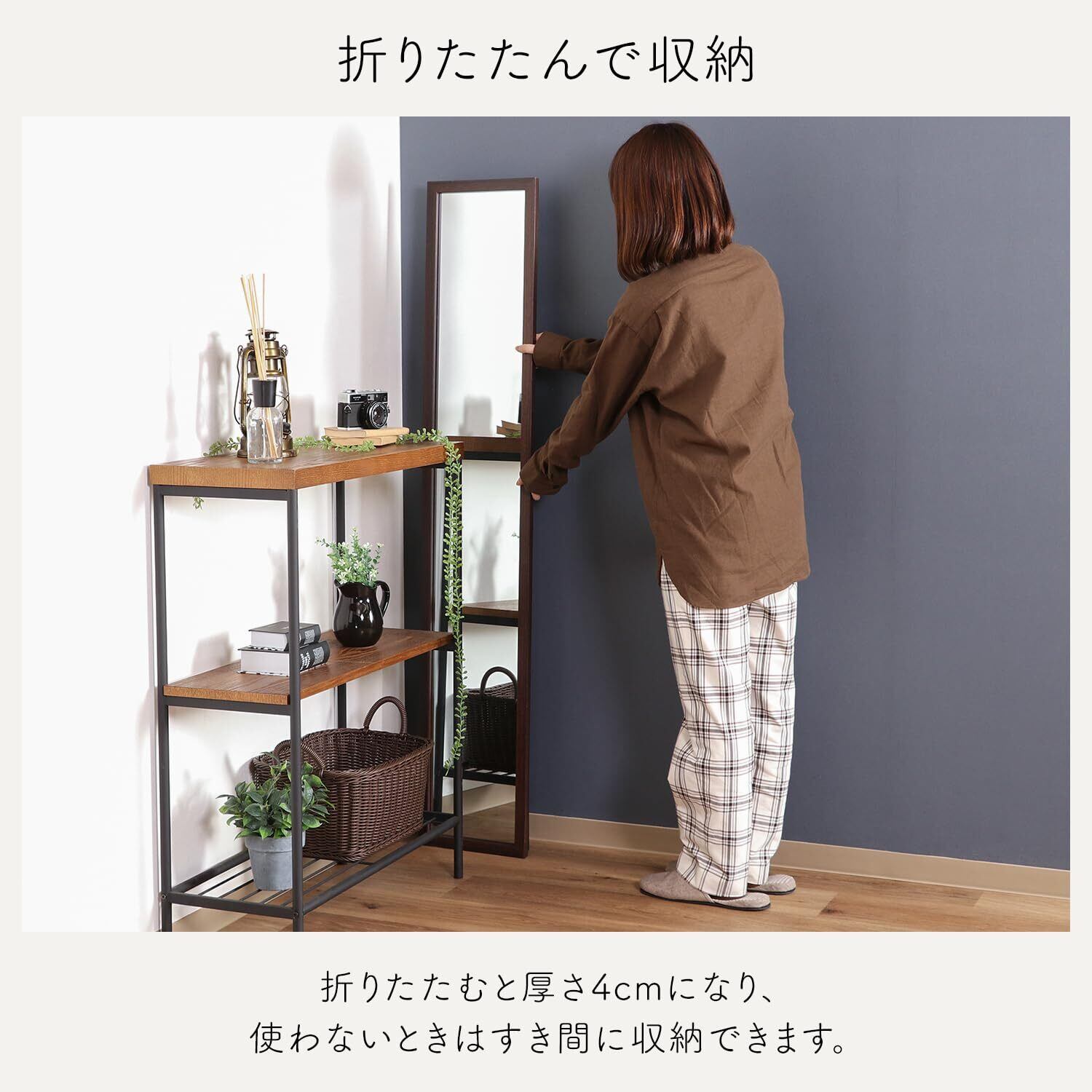 不二貿易 姿見 全身鏡 スタンドミラー 飛散防止加工 ルームミラー 木製 折りたたみ 一人暮らし 単身 幅27×奥行39×高さ147.5cm ブラウン 72091