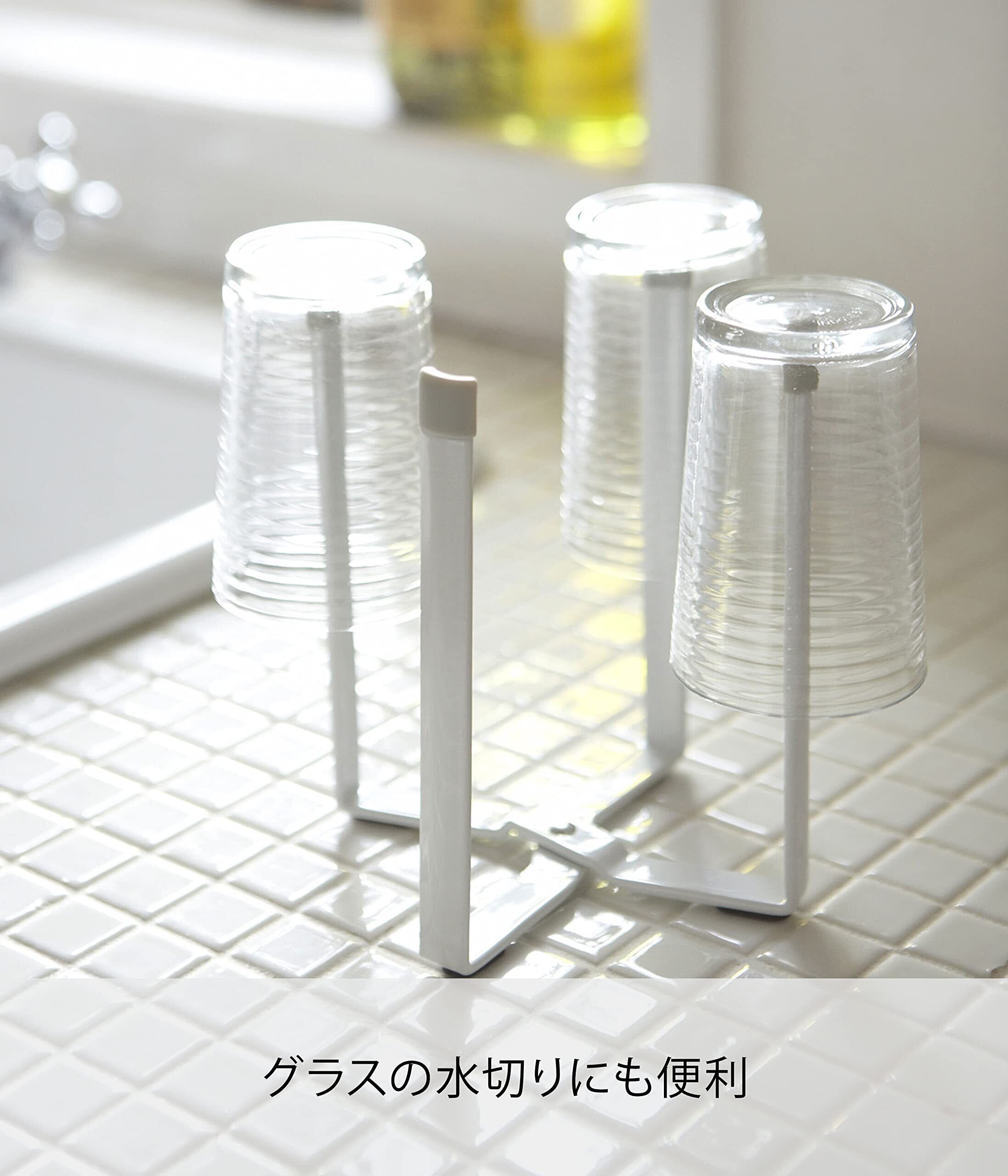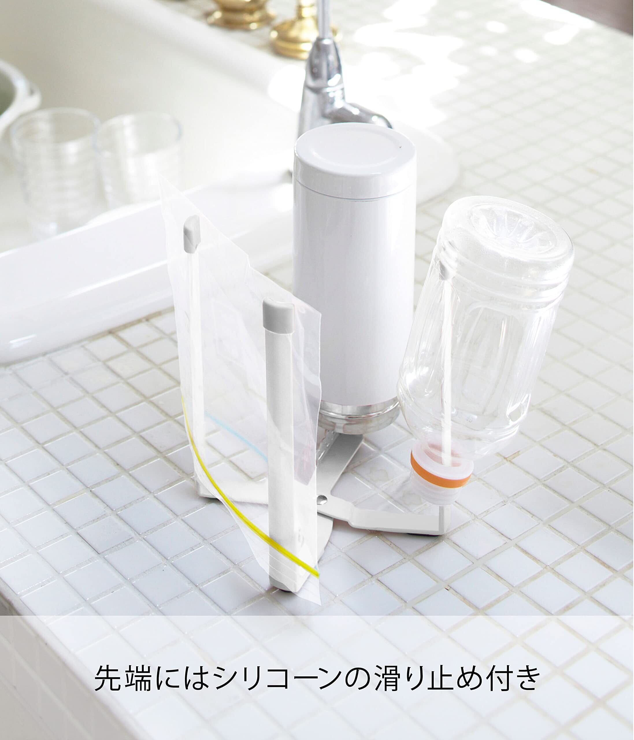 山崎実業(Yamazaki) ポリ袋ホルダー ホワイト 約W12×D9.5×H16.5cm プレート Plate 水切り 三角コーナー 卓上ゴミ箱 スリムに折り畳める 6534