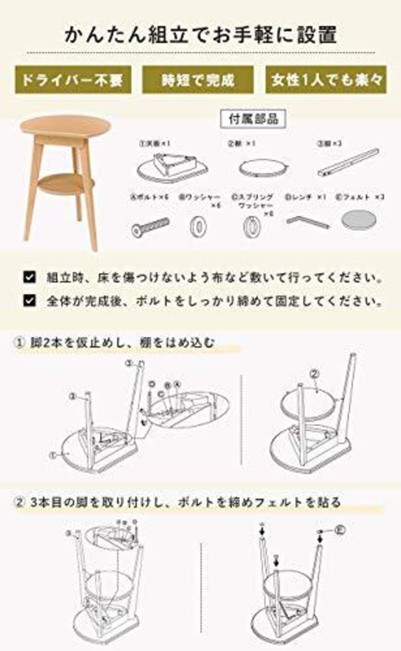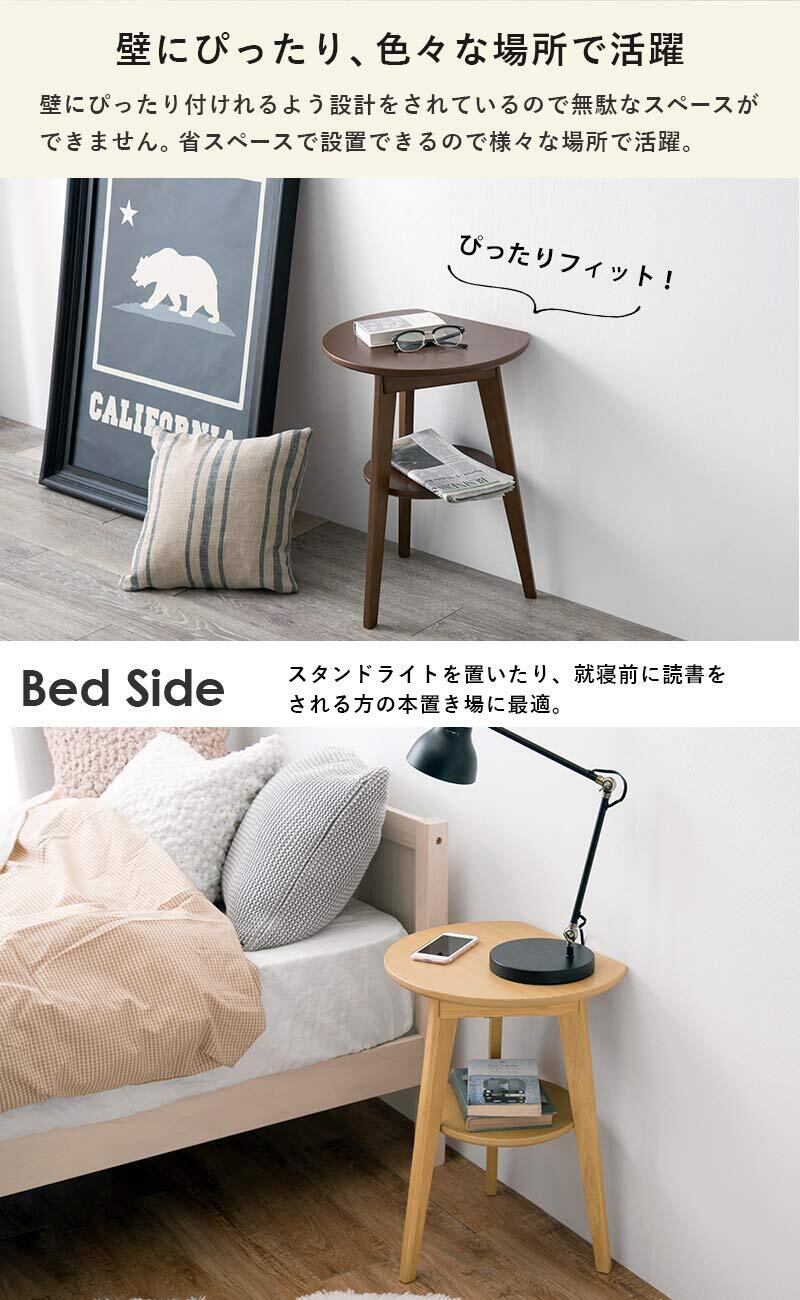 【壁付けできる省スペースデザイン】壁にピッタリつけれるように設計されているので無駄なスペースができず、お部屋もすっきり。ベッドサイドやソファサイド、玄関先など少し物を置きたいというときに便利。