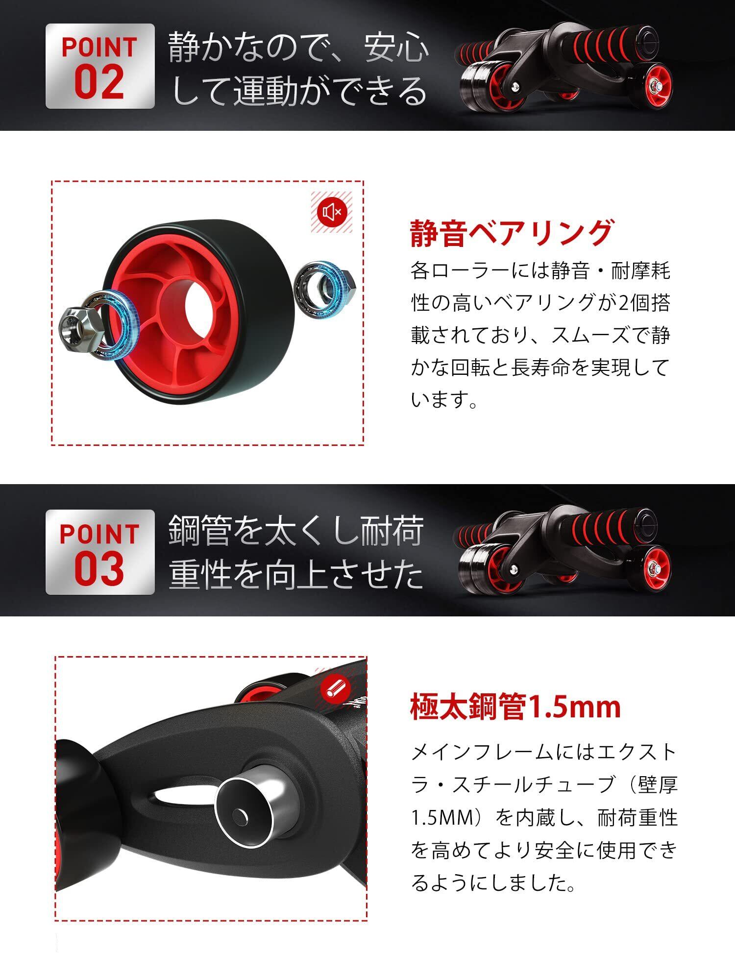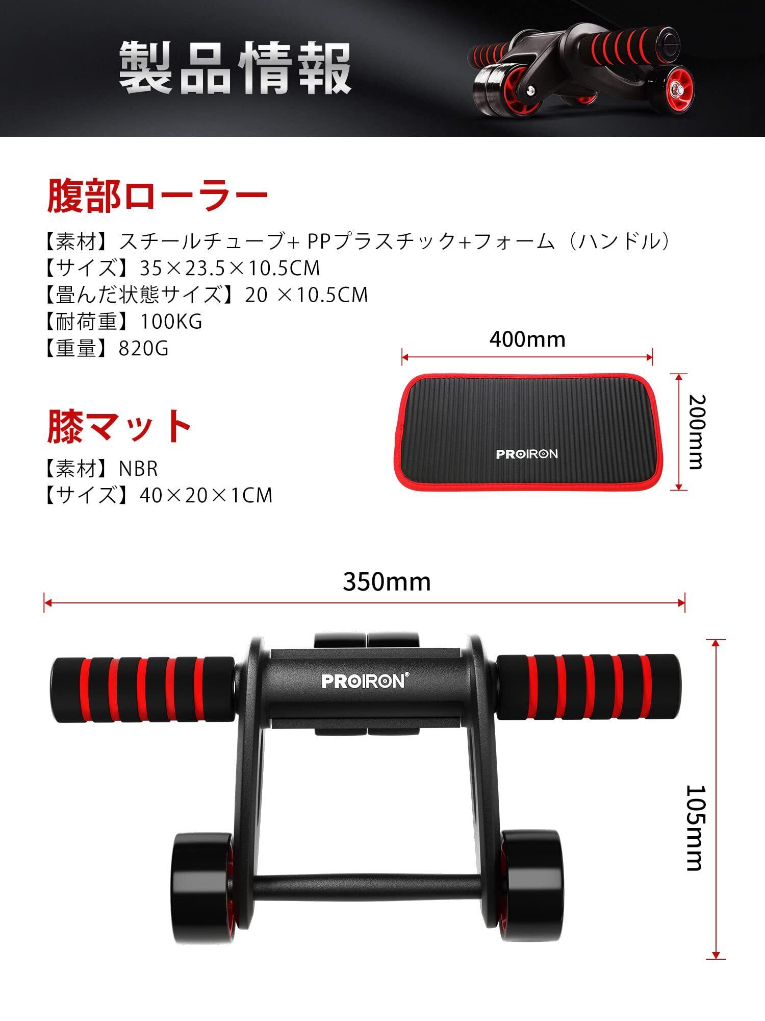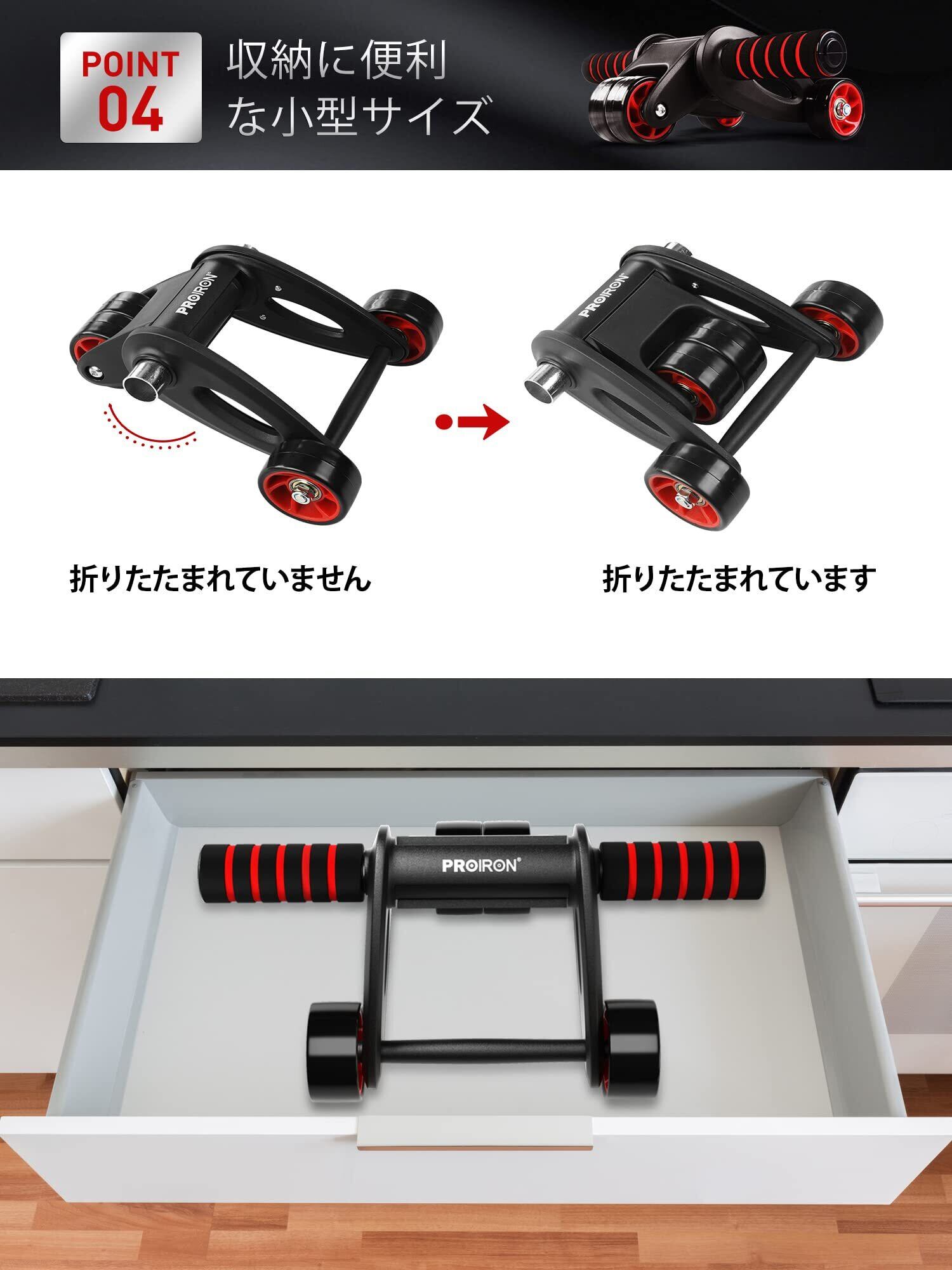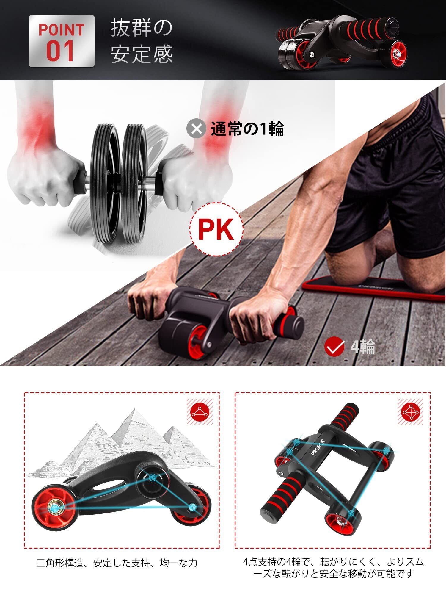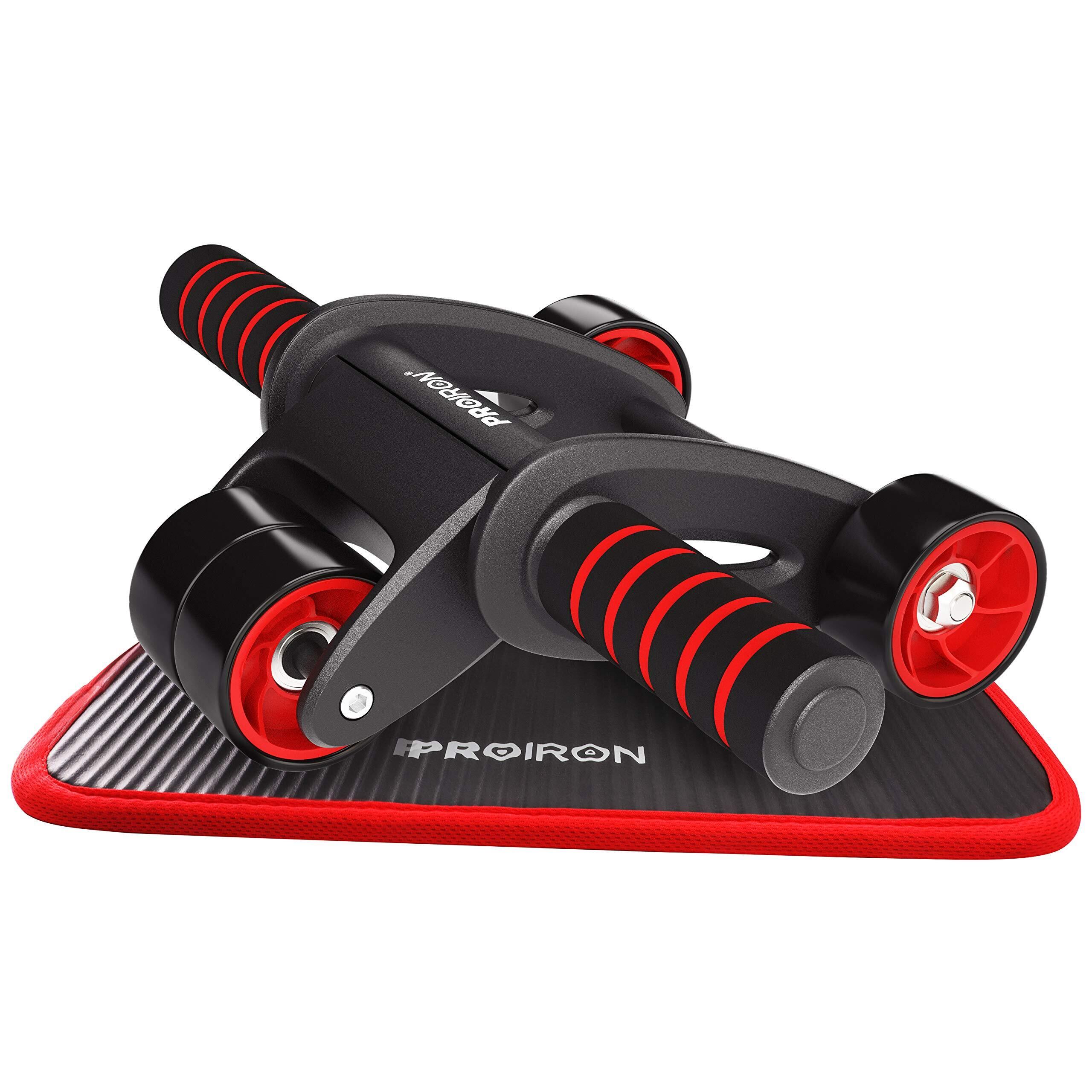 PROIRON 腹筋ローラー 四輪 アブローラー 腹筋 エクササイズローラー 超快適な膝マット付き 静音 初心者 女性 に適しています【最新四輪、安定感拔群】 (ブラック)