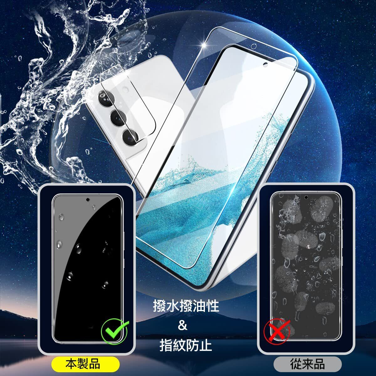 【指紋防止】この用 Galaxy S22ガラスフィルムには撥油コーティングが施されており 指紋や油分·水分の汚れが付きにくい 万が一汚れが付いても布で拭くときれいになる。滑らかで快適な手触りを実現します。