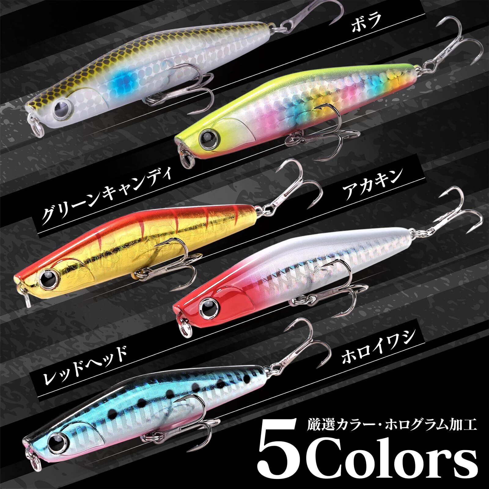 [スペック] 80mm 17.5g / シンキングペンシル / トレブルフック装備 / 対象:シーバス 青物 ヒラメ / 5個セット