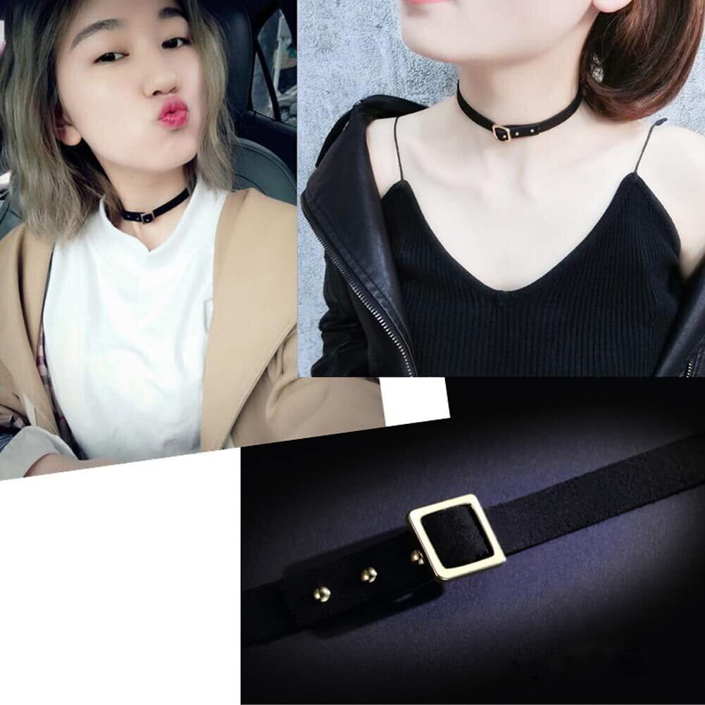 Deelfel チョーカー レディース 黒 レザー チョーカー リング ゴールド シルバー シンプル チョーカー ベルト 黒 首輪 ステンレス ファッション アクセサリー サイズ調整可能 (ゴールド)