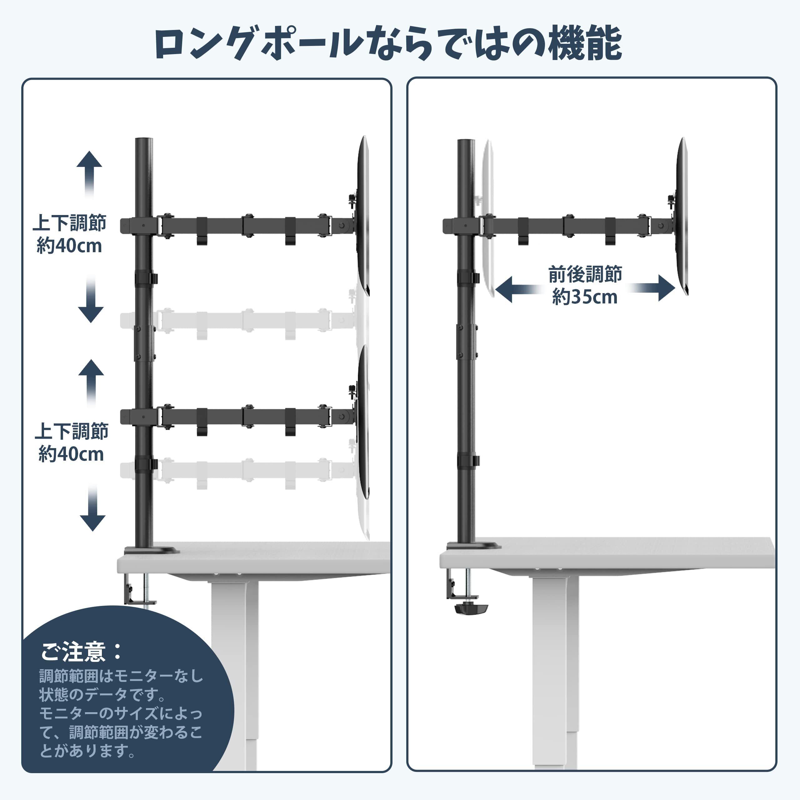 WORLDLIFT モニターアーム 縦 上下 2画面 デュアル ロングポール 水平可動 クランプ式 32インチ対応 耐荷重8KG