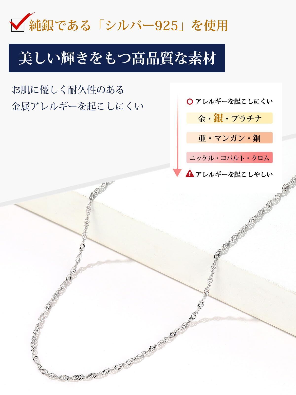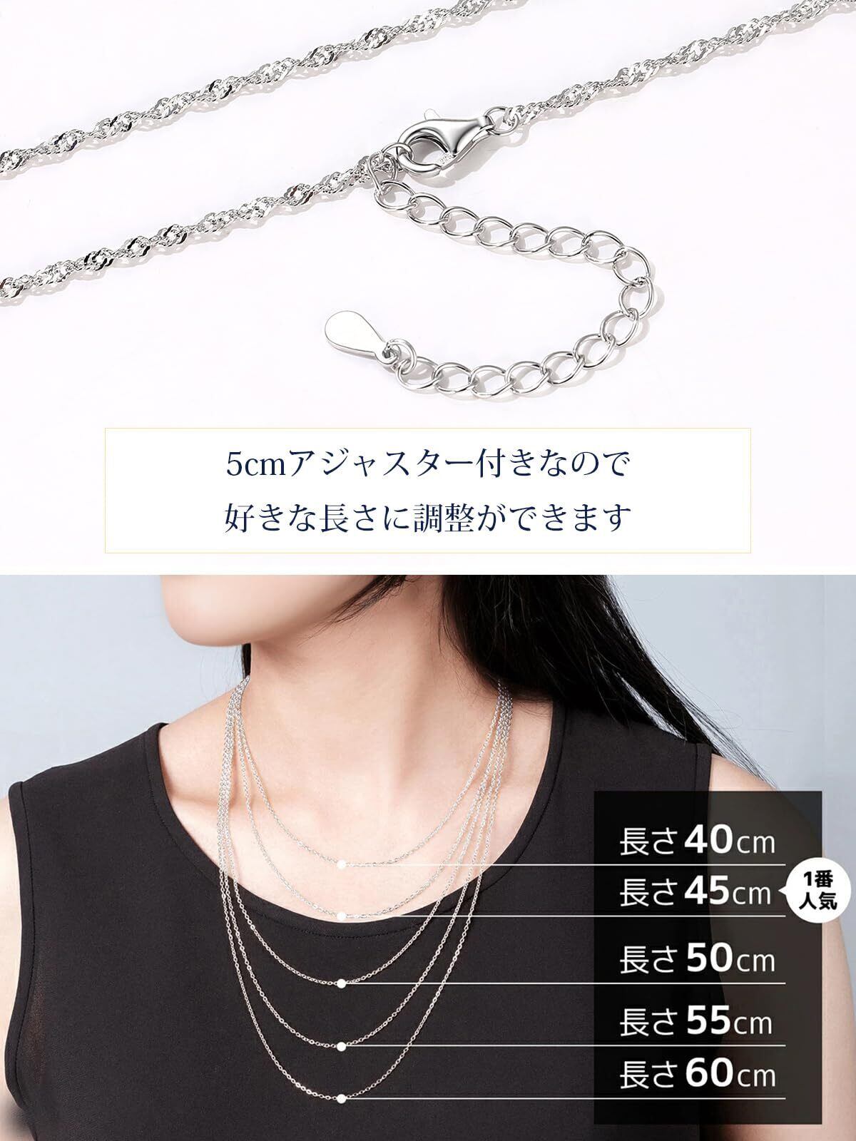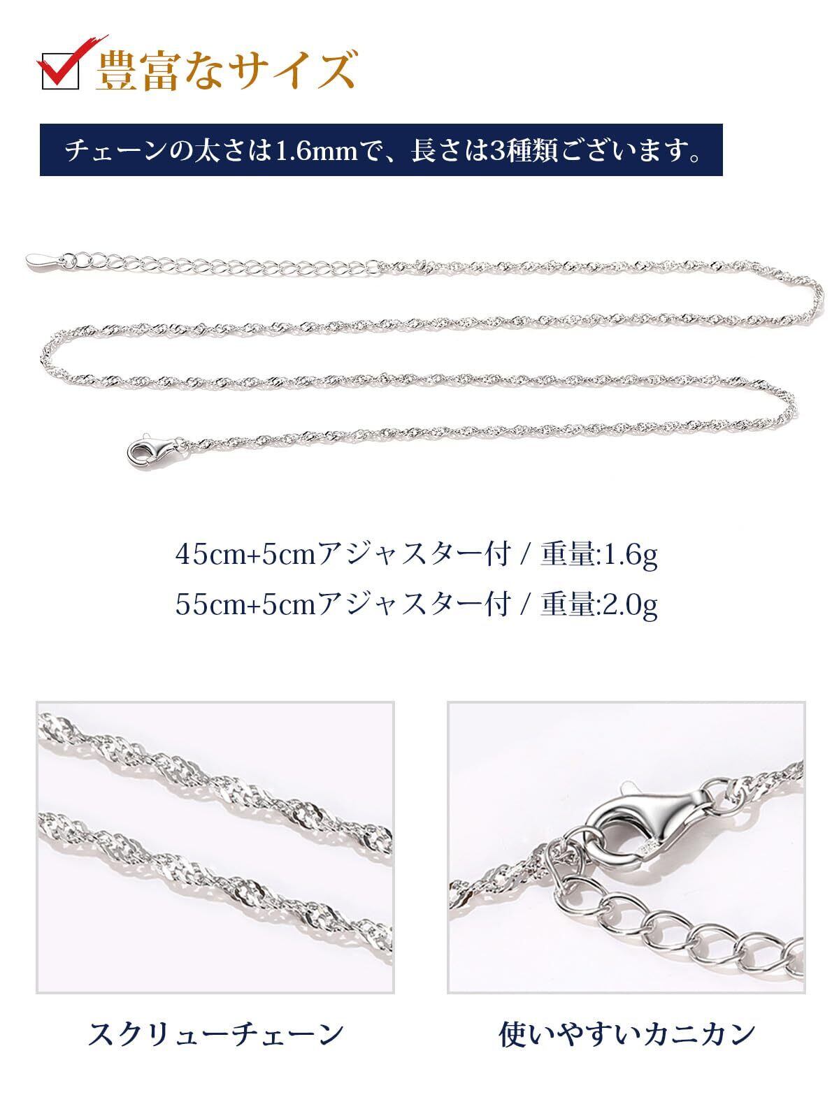 [Suplight] ネックレス チェーンのみ シルバー925 人気 細め スクリューチェーン レディース アレルギー 幅1.6mm 長さ55cm+5cmアジャスター