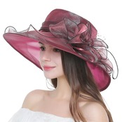 [仕様] 素材:ポリエステル 重さ:約76g サイズ:F 頭囲:約56~58㎝ つば:約10㎝ 展開カラー:ダークレッド/グレー/ライトレッド/ブラック/ワインレッド 適用対象:レディース パッケージ内容に含まれるもの:オーガンジーハット*1PCS