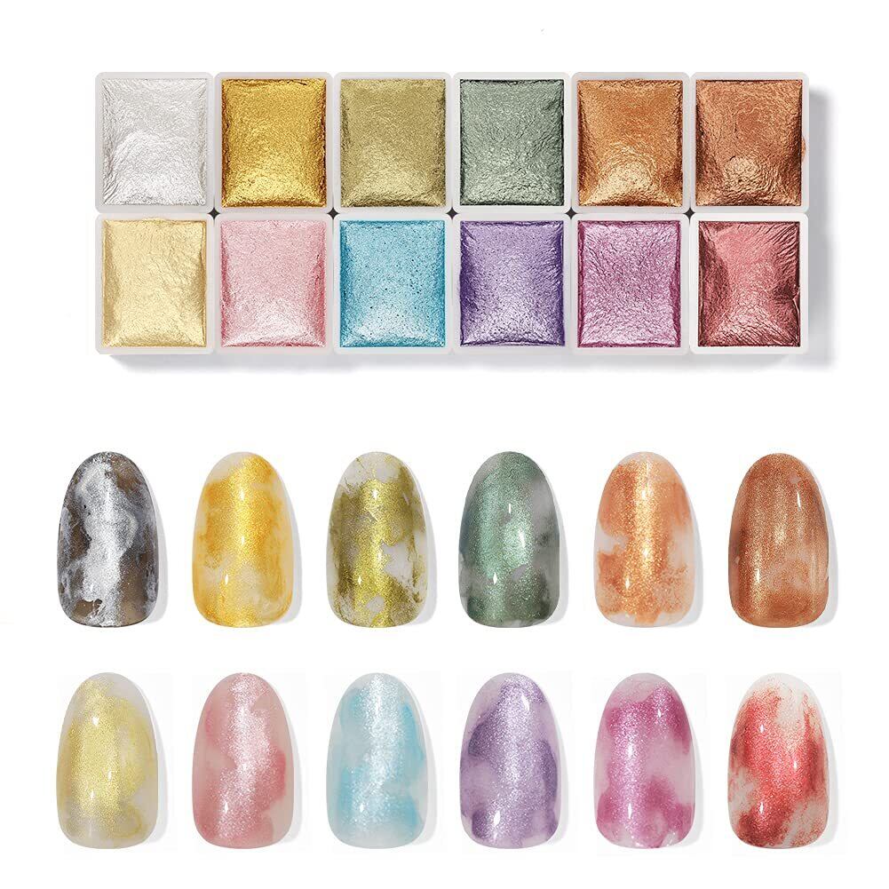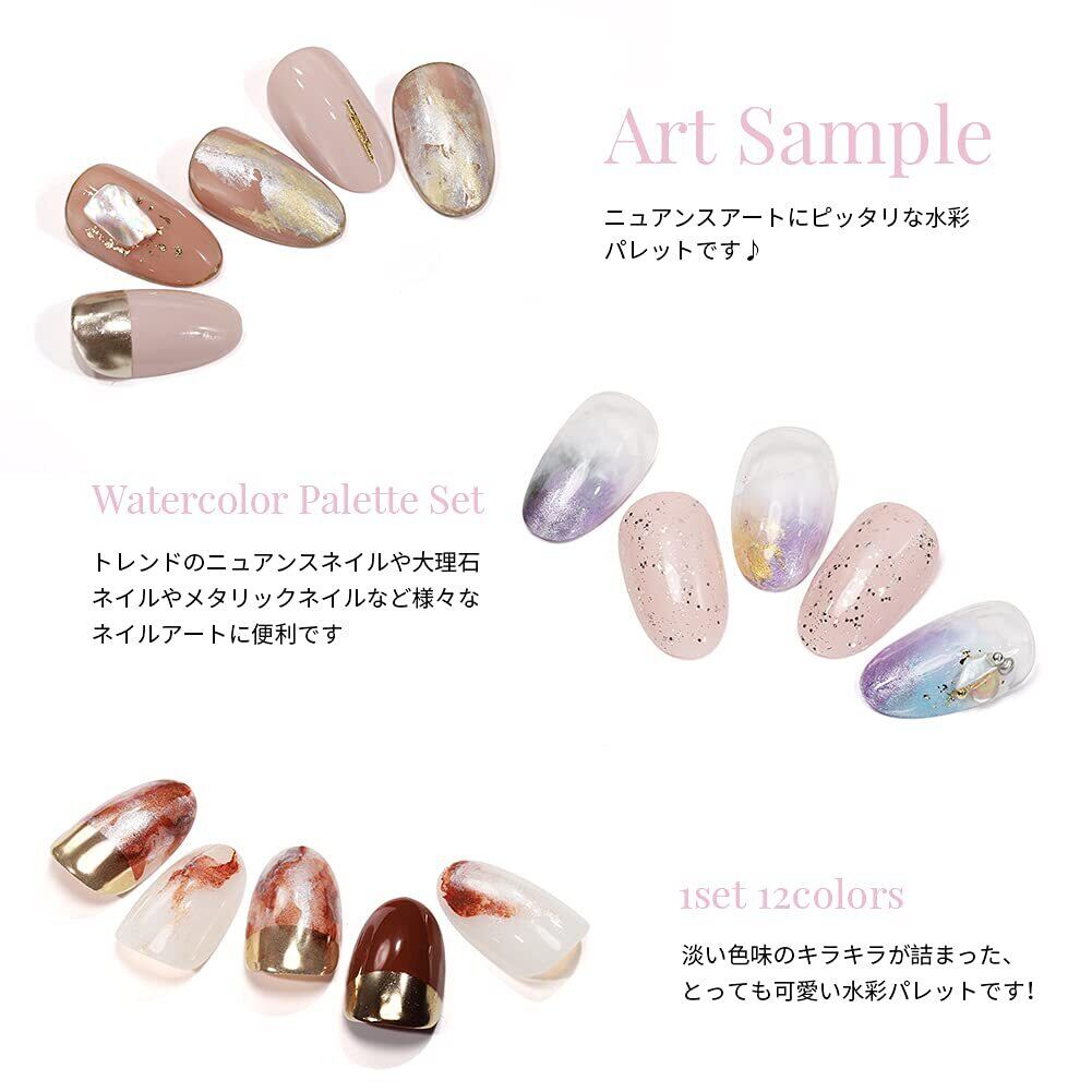ジェルネイル 水彩パレット ネイル アート 全12種 ニュアンスネイル 水彩ネイル coikaze マーブルネイル 水彩アート たらしこみアート たらしこみネイル メタリックネイル…