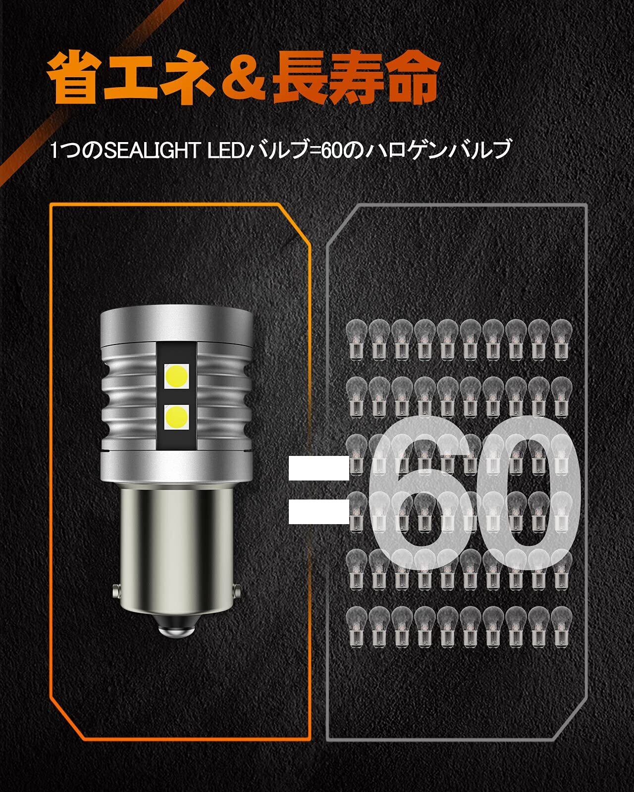 SEALIGHT S25 LED シングル バックランプ 高輝度 3000ルーメン 25W 6500K キャンセラー内蔵 後退灯 ピン角180° バックライト S25 1156ホワイト12V 無極性 50000時間以上寿命 (2個入り)