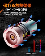 【長い寿命&抜群の放熱性】 NTC温度センサーを内蔵しと高熱伝導6063アルミ材質を採用し、本製品の放熱効果を最大限に高めます。発熱量を抑えて、灯体に負担をかからなくて、50000時間の寿命を実現し、一日一時間点灯しても136年は使用できます!