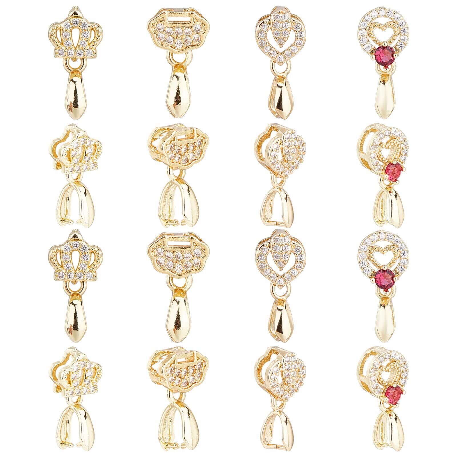 SUPERFINDINGS ゴールド 4スタイル 16個 ピン:0.6 mm 真鍮 バチカン パーツ クラウン ピンチ ベイル 接続金具 キラキラ 留め金 ネックレス ペンダント ビーズクランプ 24 Kゴールドメッキ ジュエリー用 アクセサリーパーツ ハンドメイド 手芸用品
