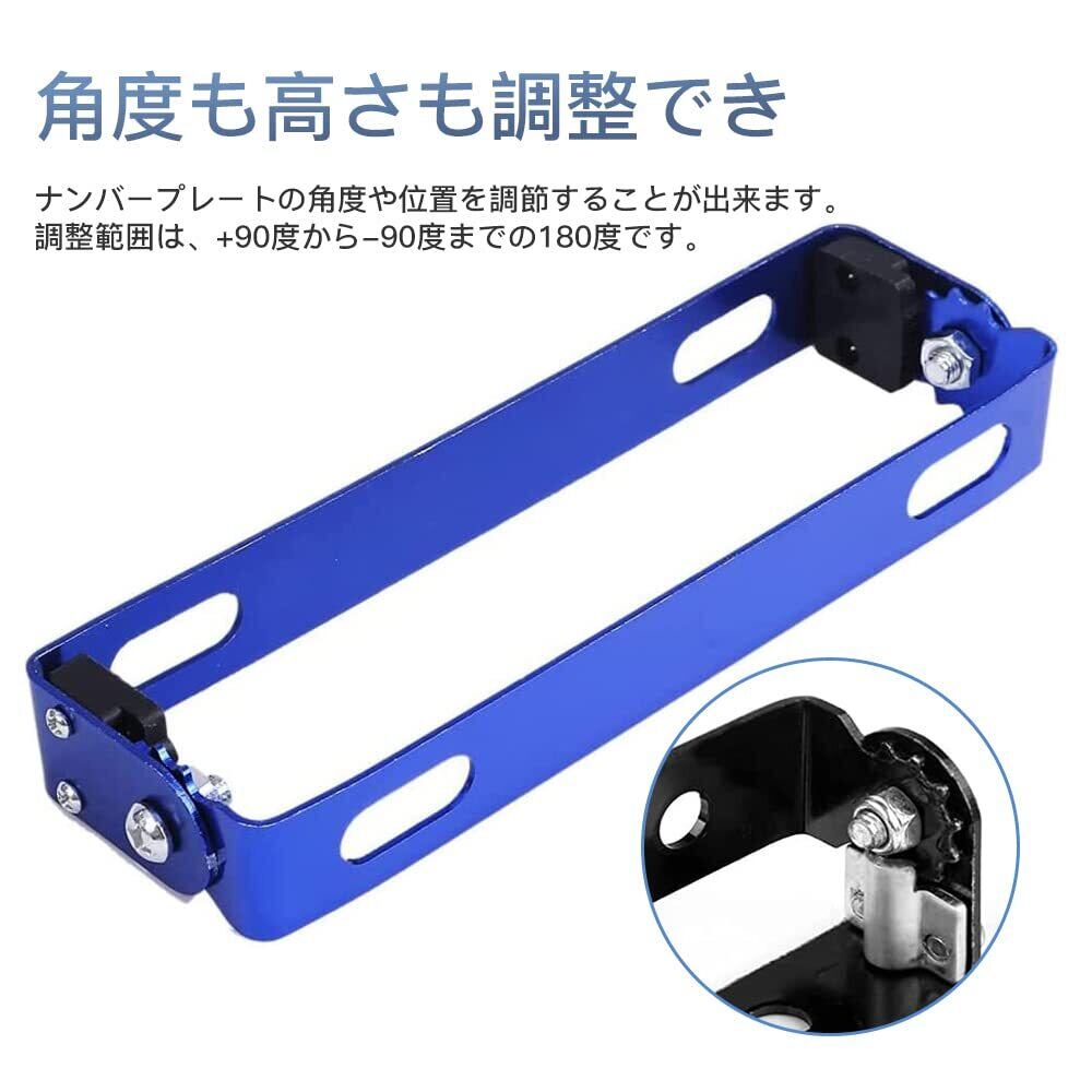 DFsucces バイク用 ナンバープレート ブラケット ステンレス製 簡単取付 汎用 ナンバーステー 180°角度調整 原付 含ネジとレンチが (ブルー)
