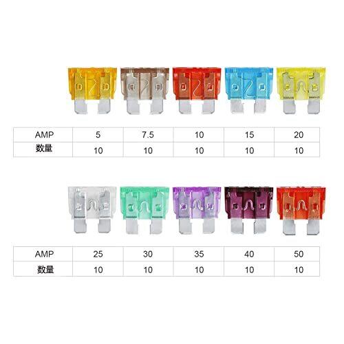 商品仕様 : 100個5A 7.5A 10A 15A 20A 25A 30A 35A 40A 50A、合計10モデル、各10個、すべてのニーズに対応します。