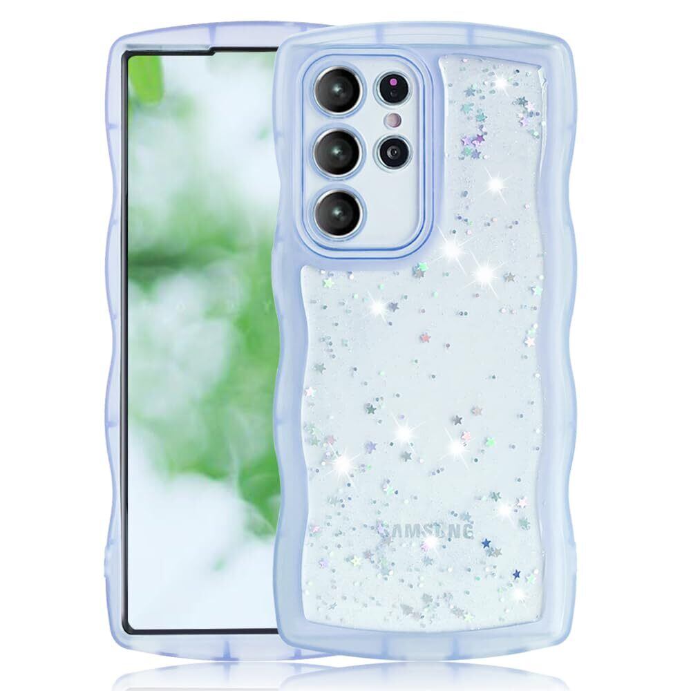 YUYIB Samsung Galaxy s22 ultra ケース SC-52C SCG14 ケース クリア キラキラ かわいい tpuソフトケース 薄型 傷防止背面 滑り止め 指紋防止 ストラップホール付き スマホケース ギャラクシーs22 ultra カバー (ブルー, Galaxy S22 Ultra)