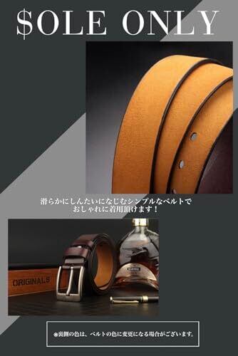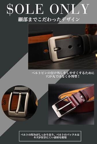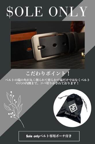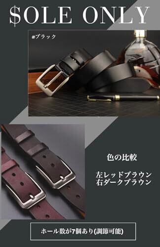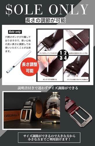 [$ole only] ソールオンリー ベルト 本革 ブラック ダークブラウン レッドブラウン レザーベルト 穴あけポンチ付き 長さ調整可能 かっこいい ビジネス 紳士 カジュアル 通勤 メンズ レディース 120cm (ウエスト100cm以下対応, ブラック)