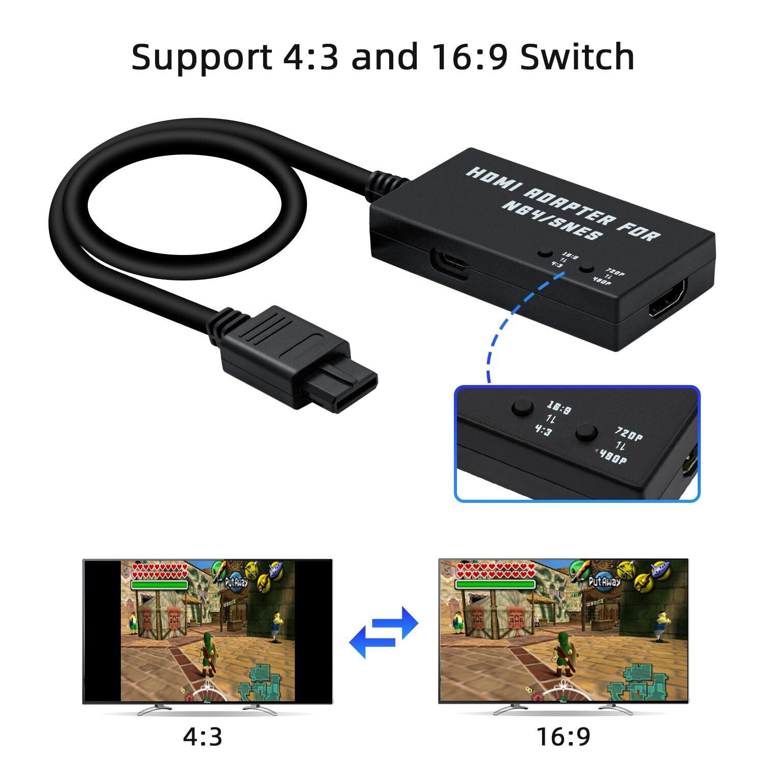 Mcbazel SFC/N64/ゲームキューブ専用 HDTVからHDMI変換コンバーター ケーブル アスペクト比切り替えスイッチ内蔵 4:3から16:9変換可能 HDMI変換接続コンバーター-SFC/N64/ゲームキューブ対応-ブラック