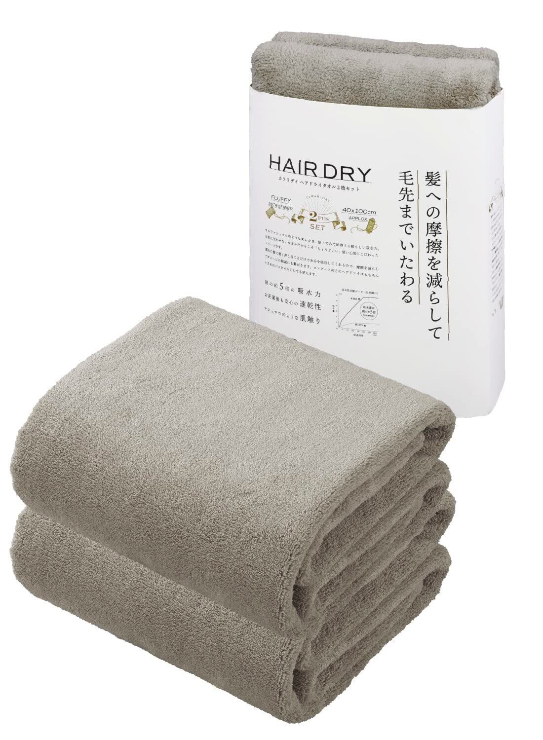 シービージャパン(CB JAPAN) carari(カラリ) ヘアドライタオル 吸水力[5倍]のマイクロファイバー DAY グレー 2枚組 繊維の隙間に素早く吸水 速乾 マシュマロ肌触り ふわふわもちもち 40×100cmカラリデイ