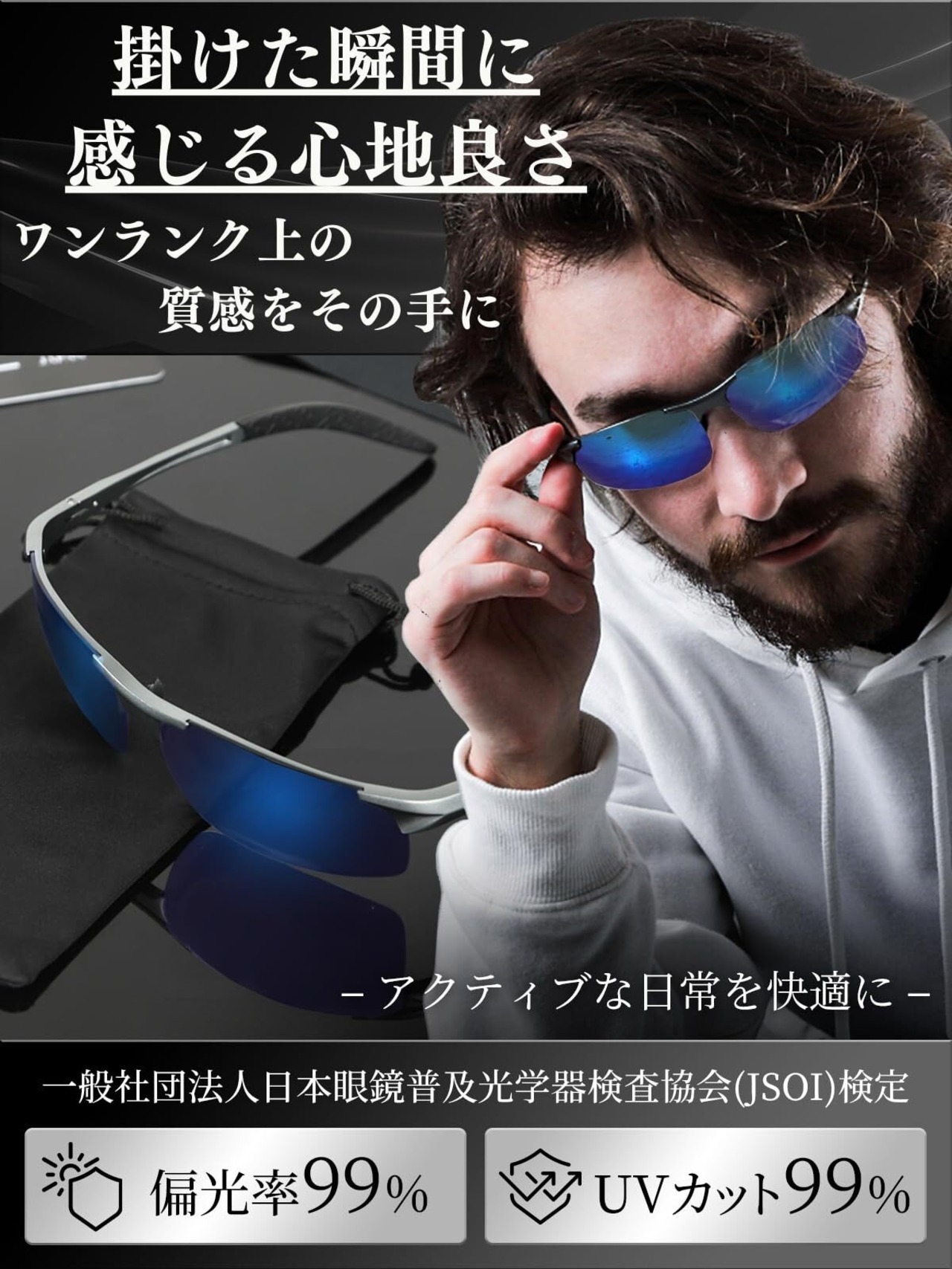 * 【疲れ目の軽減】偏光レンズを採用し透過率を高め反射光などの有害な光線を有効的に遮ります。 紫外線透過率:1.0%以下(カット率99%以上)UV400カットレンズ、鮮明で自然な色知覚を維持しつつ、紫外線とブルーライトからしっかりと目を保護してくれます。