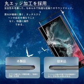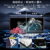 【9H強度&飛散防止】対応 Galaxy S22 Ultra 5G SCG14 SC-52C 強化ガラス 保護フィルムは日本旭硝子素材を採用します。 落下、スクラッチ、衝突、衝撃に高い耐久性があります 衝撃を最小限に抑えて画面の破損を抑え。カッターなどの鋭利なものを当たってもキズが付きにくくて高い強度を持ち表面硬度9Hが特徴です。特殊な飛散防止設計により、万一割れてしまった際にも飛散することなく、高い安全性を実現します。