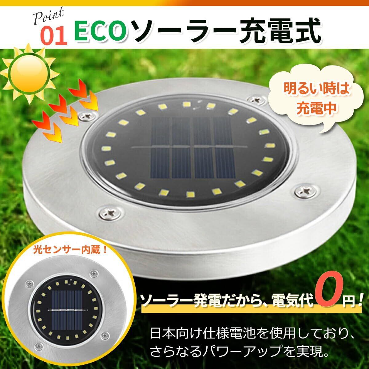 電源不要、ソーラーエネルギーを利用して、昼間に自動充電で夜間に自動点灯!