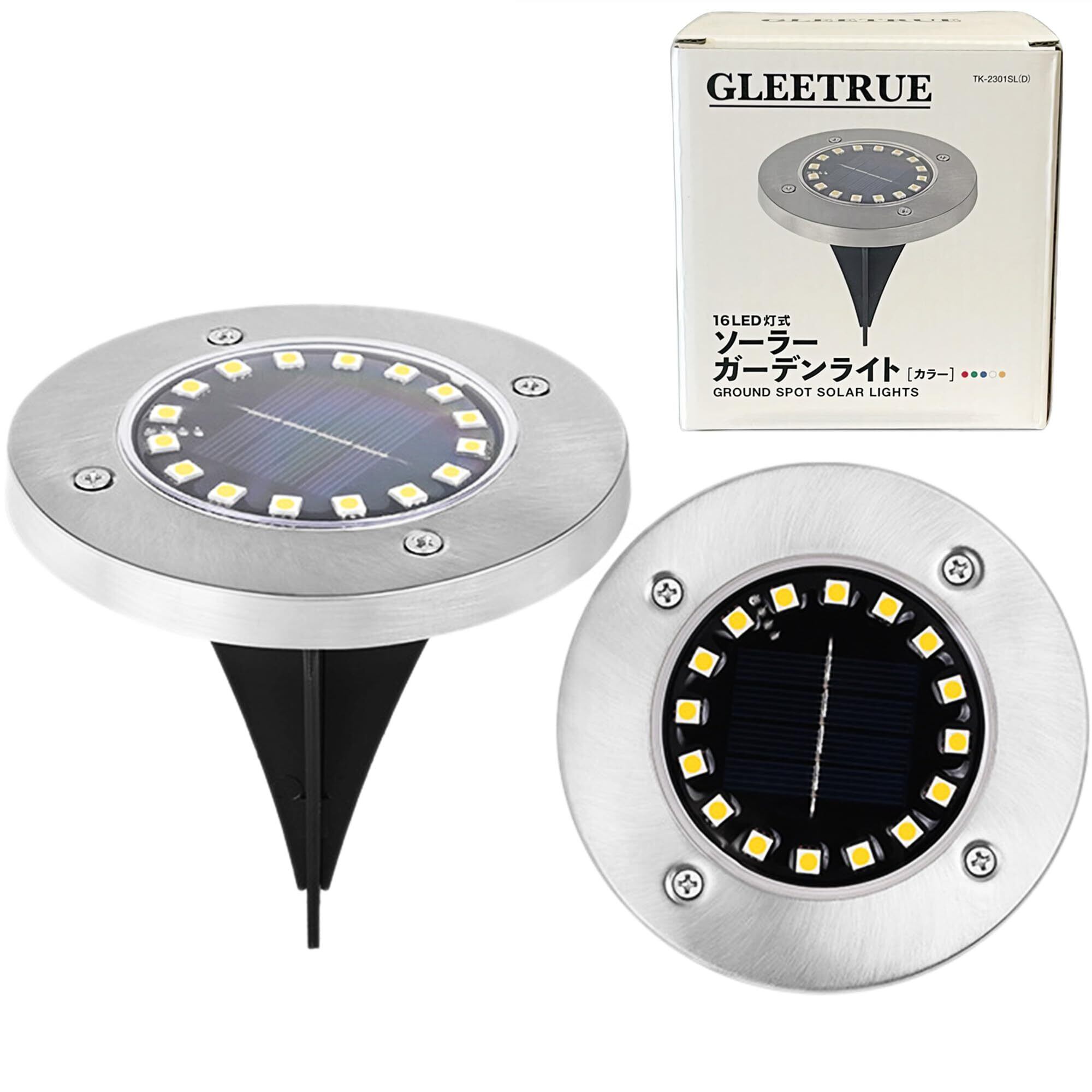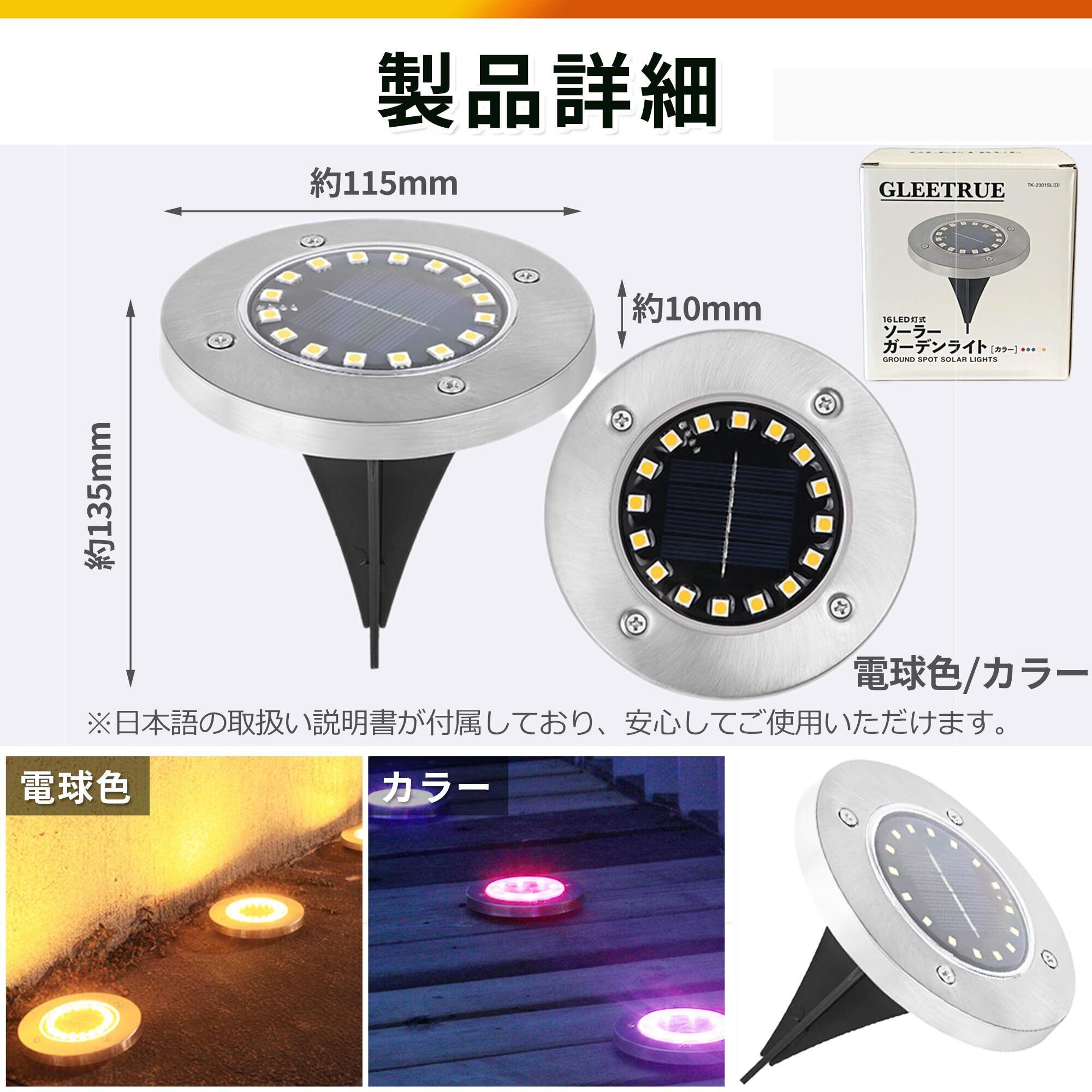 GLEETRUE ガーデンライト 屋外 16LED IP65防水 超明るい ソーラー センサーライト 自動点灯・消灯 ソーラー LED ライト 芝生 埋め込み 置き型 車道 花壇 歩道 玄関 防犯 動物よけにも 太陽光照明 カラー変色(4個セット)