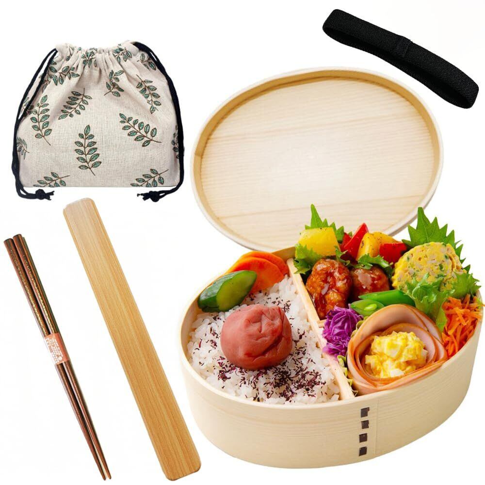 【初心者にお勧め!買い足し不要の5点セット!】『白木調まげわっぱ』『お箸』『巾着』『ランチバンド』『お手入れガイドブック』の豪華5点セット!買い足し不要ですぐに曲げわっぱデビュー