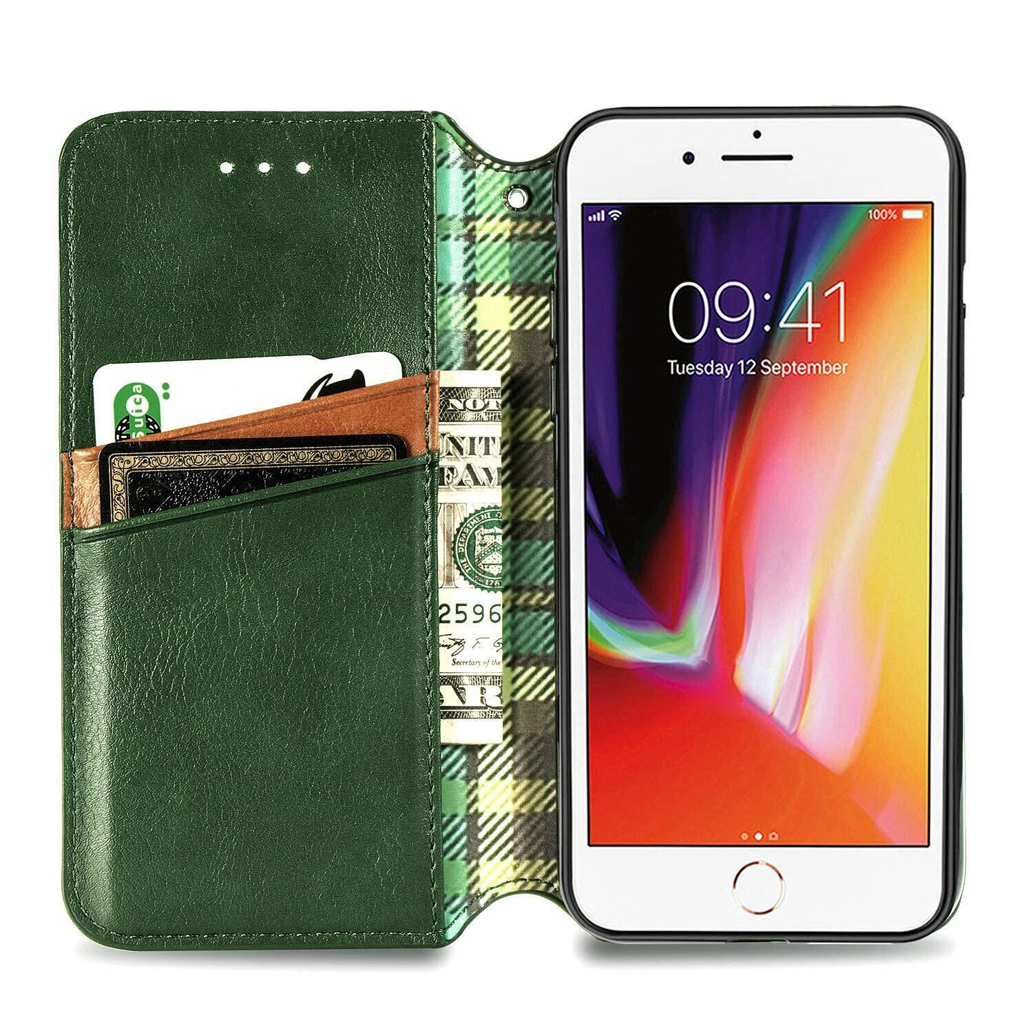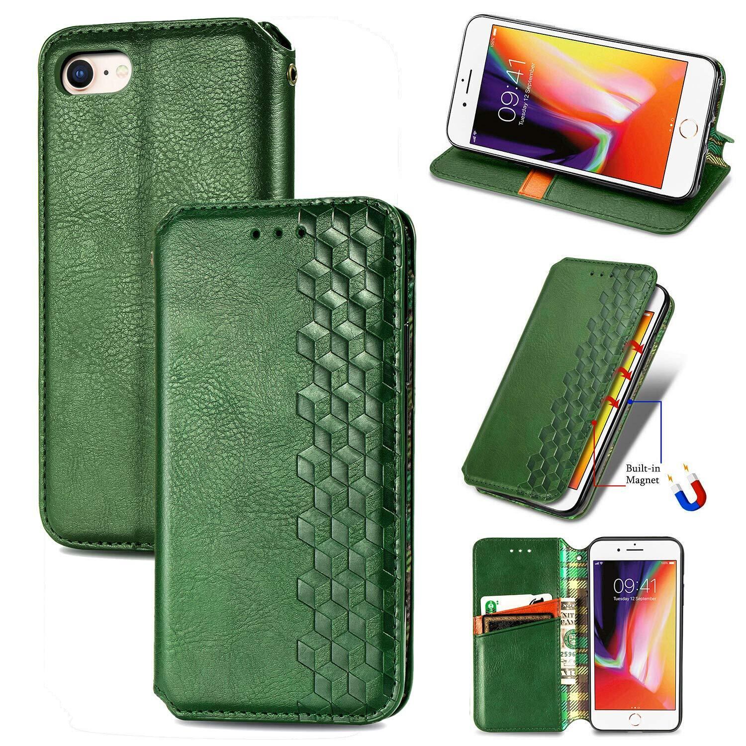 に適用するiPhone SE 第3世代 (2022) / iPhone SE 第2世代 (2020) / iPhone8 / iPhone7 ケース 手帳型 ノートブック型ビジネスフォンケース 携帯電話保護カバー強い吸引力ノートブック型多機能携帯電話ホルスター財布携帯電話ホルダーバンプパターンテクスチャ耐久性摩擦耐性携帯電話ケース男性と女性に適した多色オプション (グリーン)