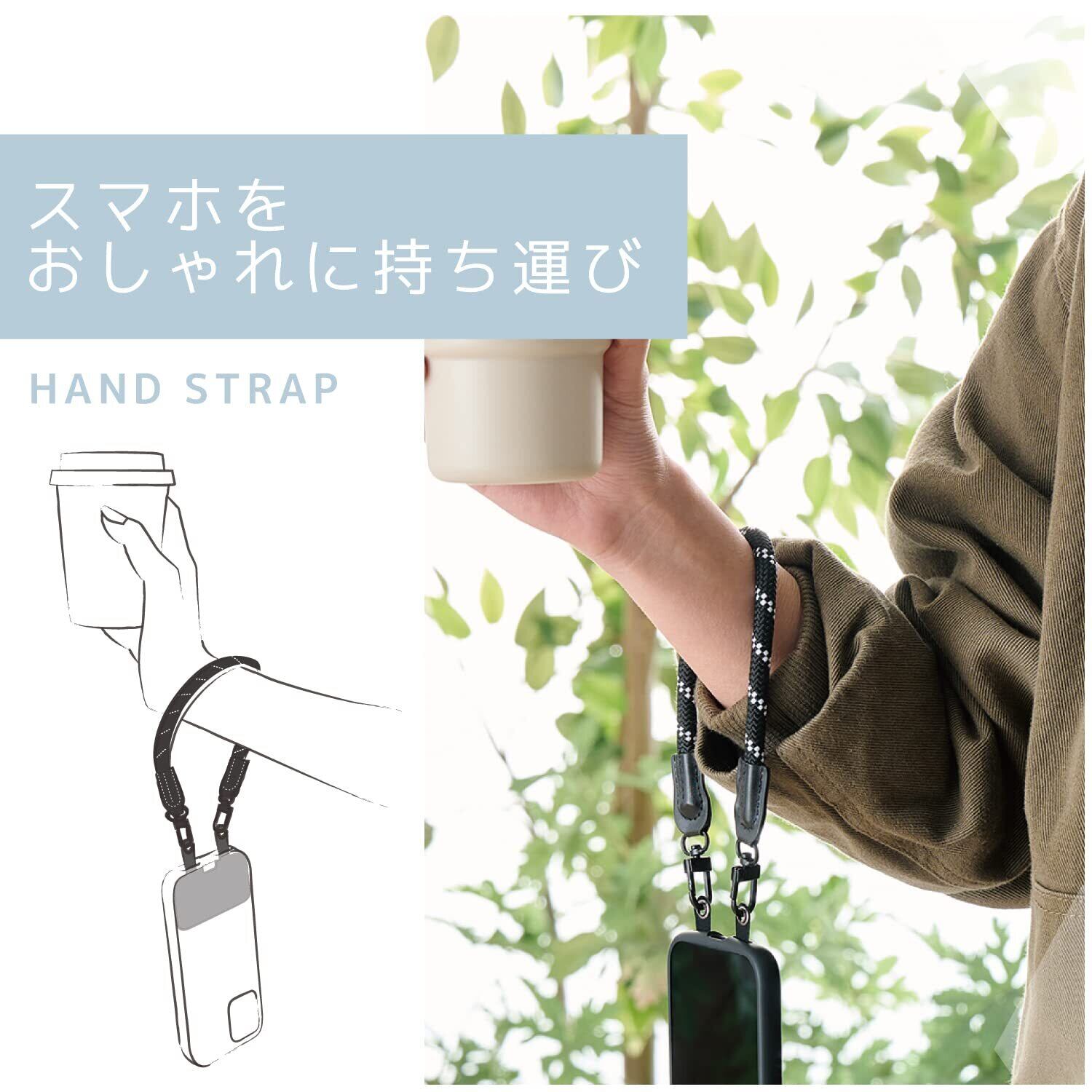 手首や腕から提げて持ち歩けるので、両手がふさがらずいつでもサッとスマートフォンの操作ができます。