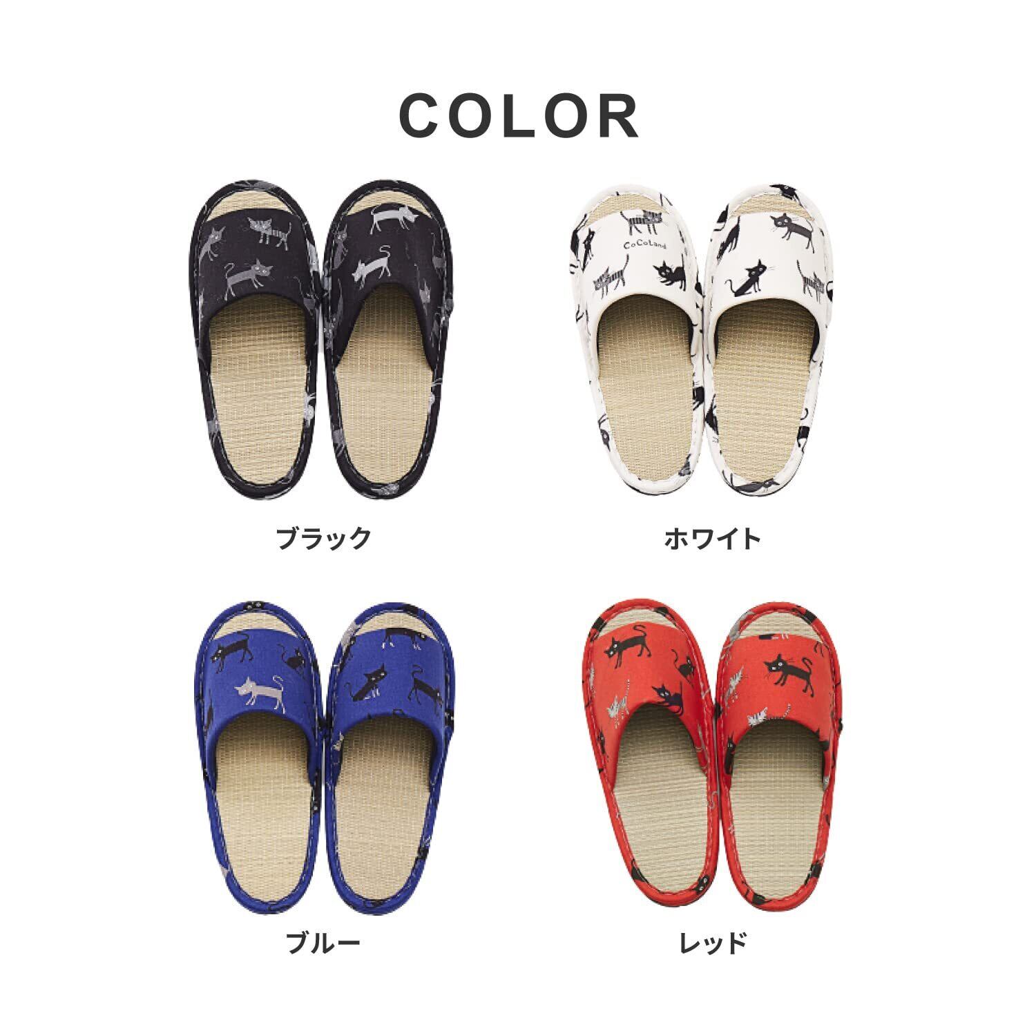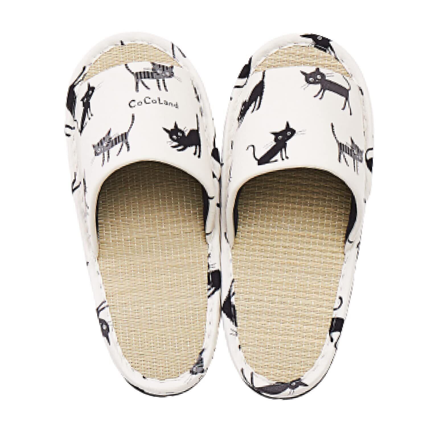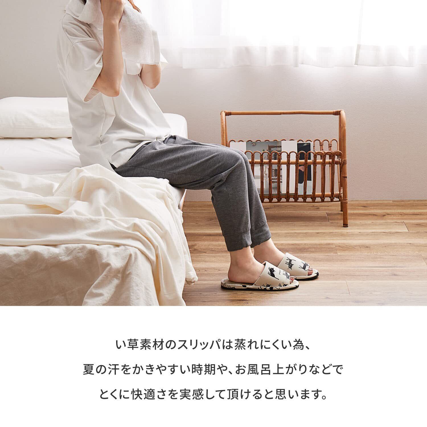 萩原 国産い草 スリッパ 室内 モノネコ ホワイト Mサイズ 約26cm ルームシューズ レディース ユニセックス 猫グッズ 日本製