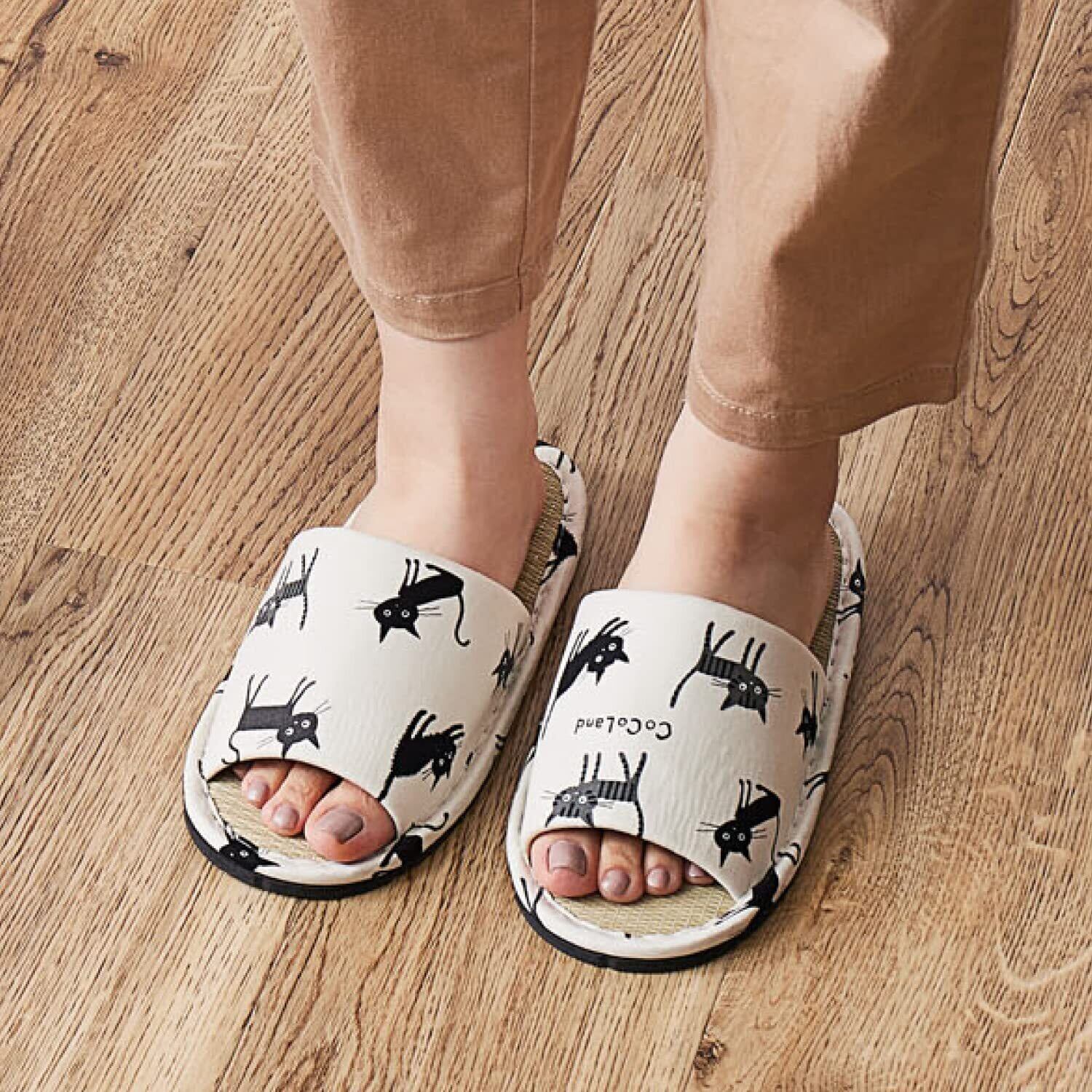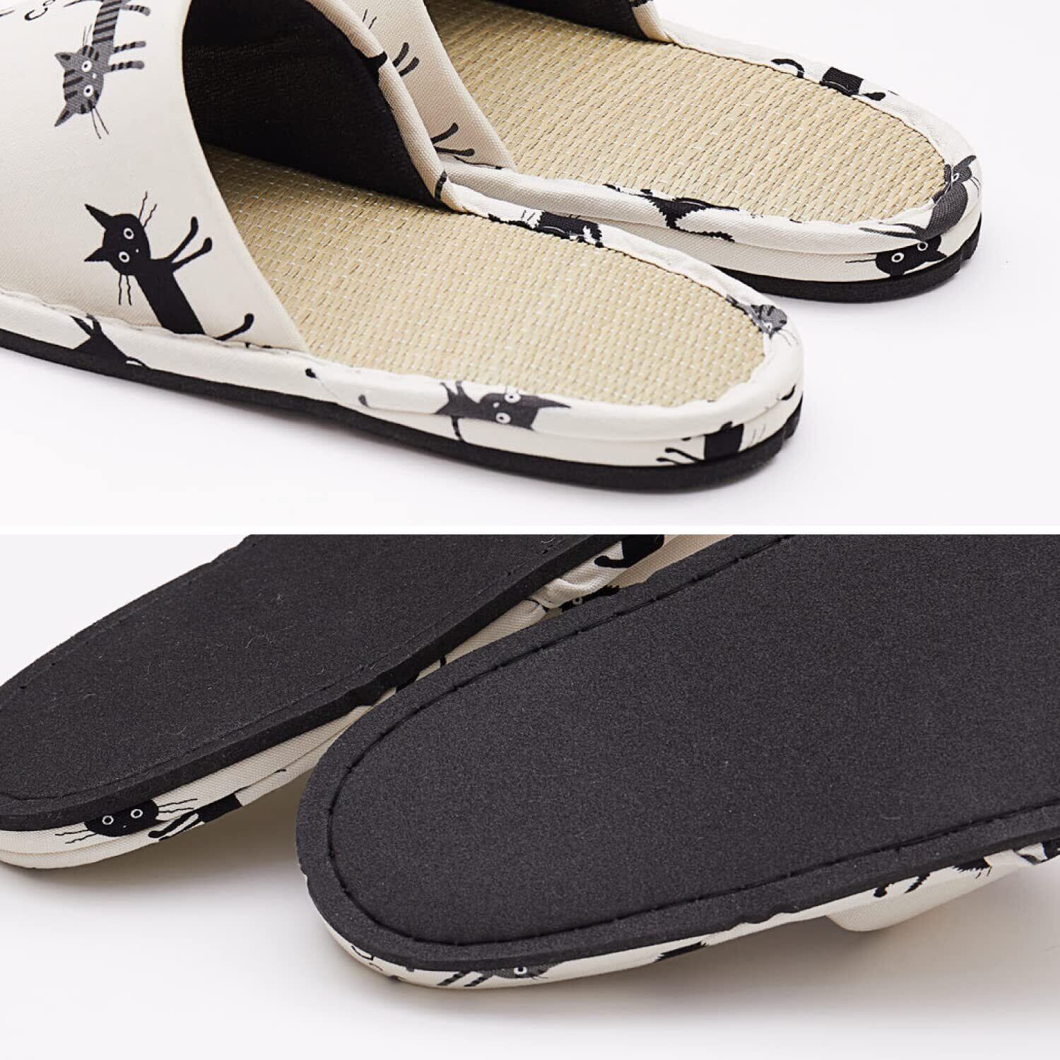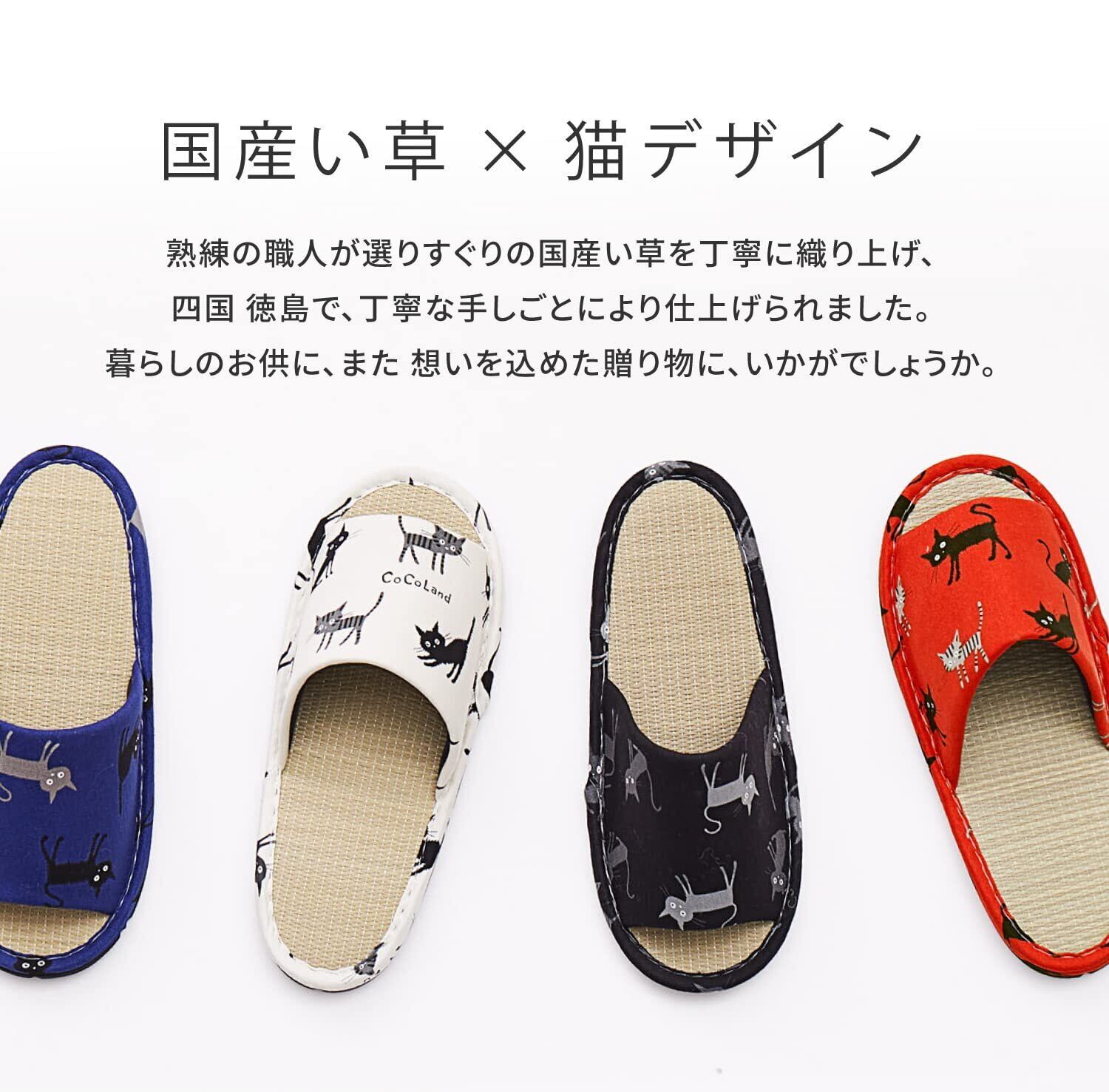 萩原 国産い草 スリッパ 室内 モノネコ ホワイト Mサイズ 約26cm ルームシューズ レディース ユニセックス 猫グッズ 日本製