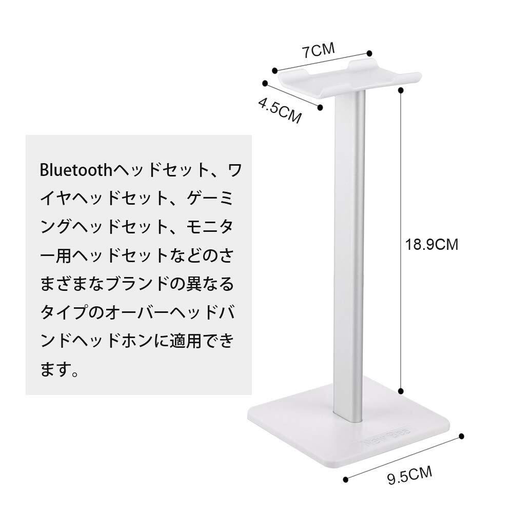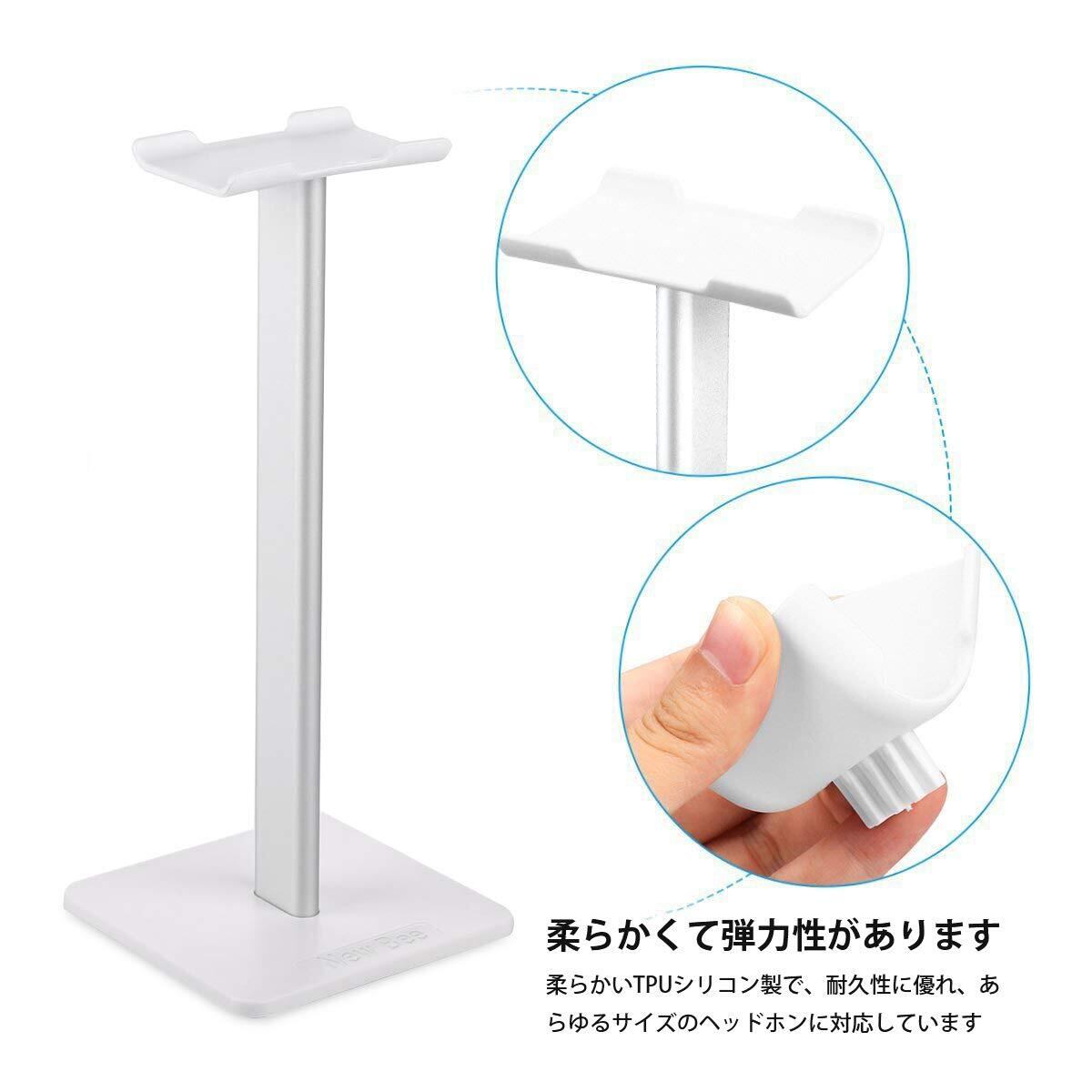 上質の材質:スタンド上部には柔らかいTPUプラスチックを採用していますので、ヘッドフホンのヘッドバンドを保護することができます。中間はアルミ合金ロッドで作れており、頑丈で長持ちです。底部にPEプラスチックを採用しており、同時に4枚のシリコンゴムをちりばめて、強い付着力があって、テーブルを傷つけなくて、傾き倒れることがないです。