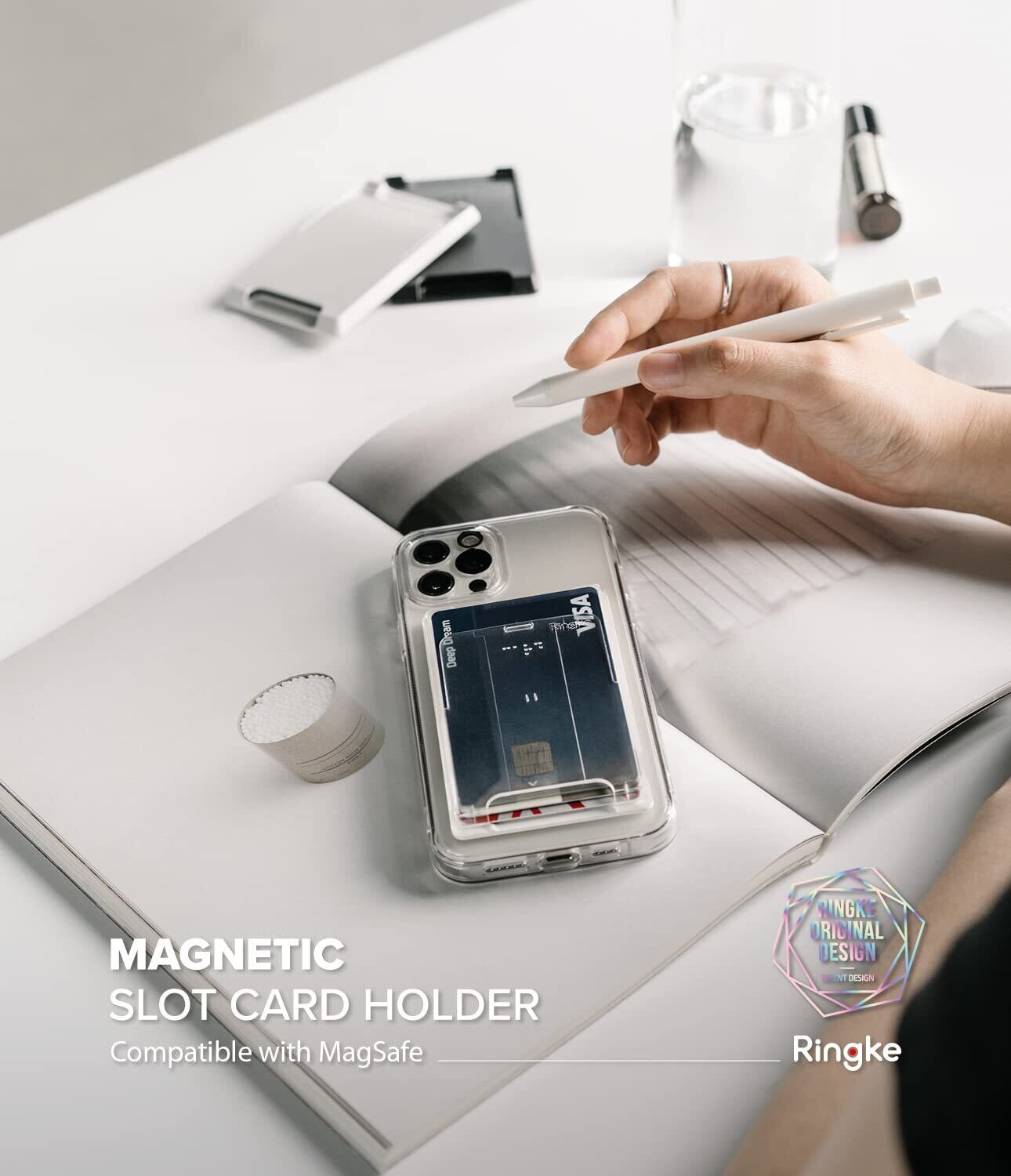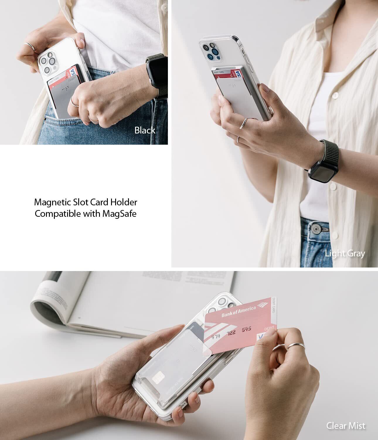 【Ringke】MAGNETIC SLOT CARD HOLDER カードホルダー SUICA PASMO MagSafe対応 収納 財布 定期入れ 名刺入れ カード収納 カード入れ スマホ カード ホルダー ポケットケース クレジットカード マグネット スマホカードケース - Clear Mist