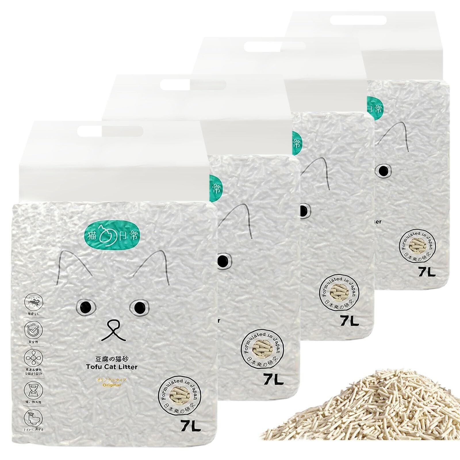 VINEER 猫砂 おから 固まる 流せる 猫トイレ砂 しっかり消臭 飛び散らない トイレに流せる おからの猫砂 天然素材 真空パック(オリジナルフレーバー 7Lx4袋)
