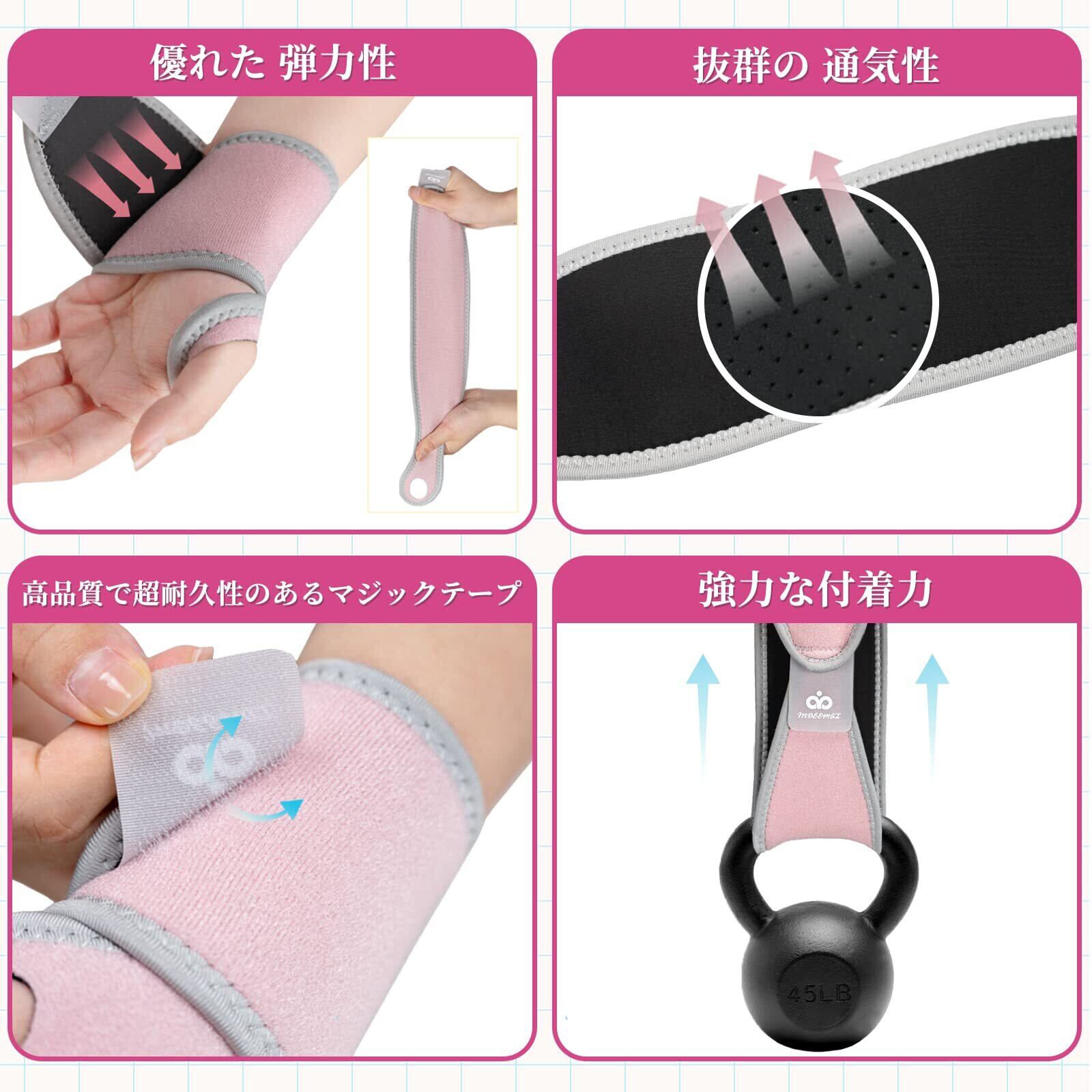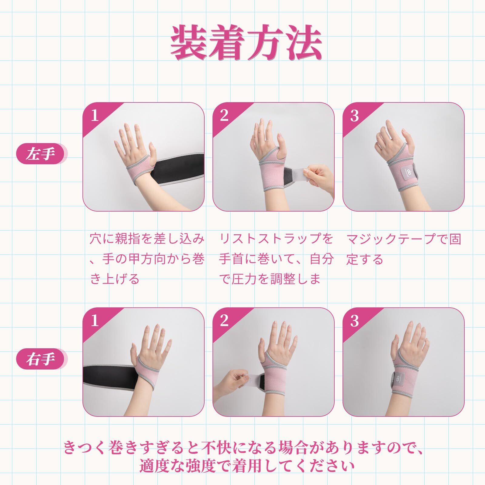 【フリーサイズ、調節自由】高品質マジックテープを採用し、貼りやすくて落ちにくく、手首をやさしく圧迫しサポートします。ストレス調節が自由で、最適な圧迫力を調整でき、手関節を最高の快適な状態に保ちます!