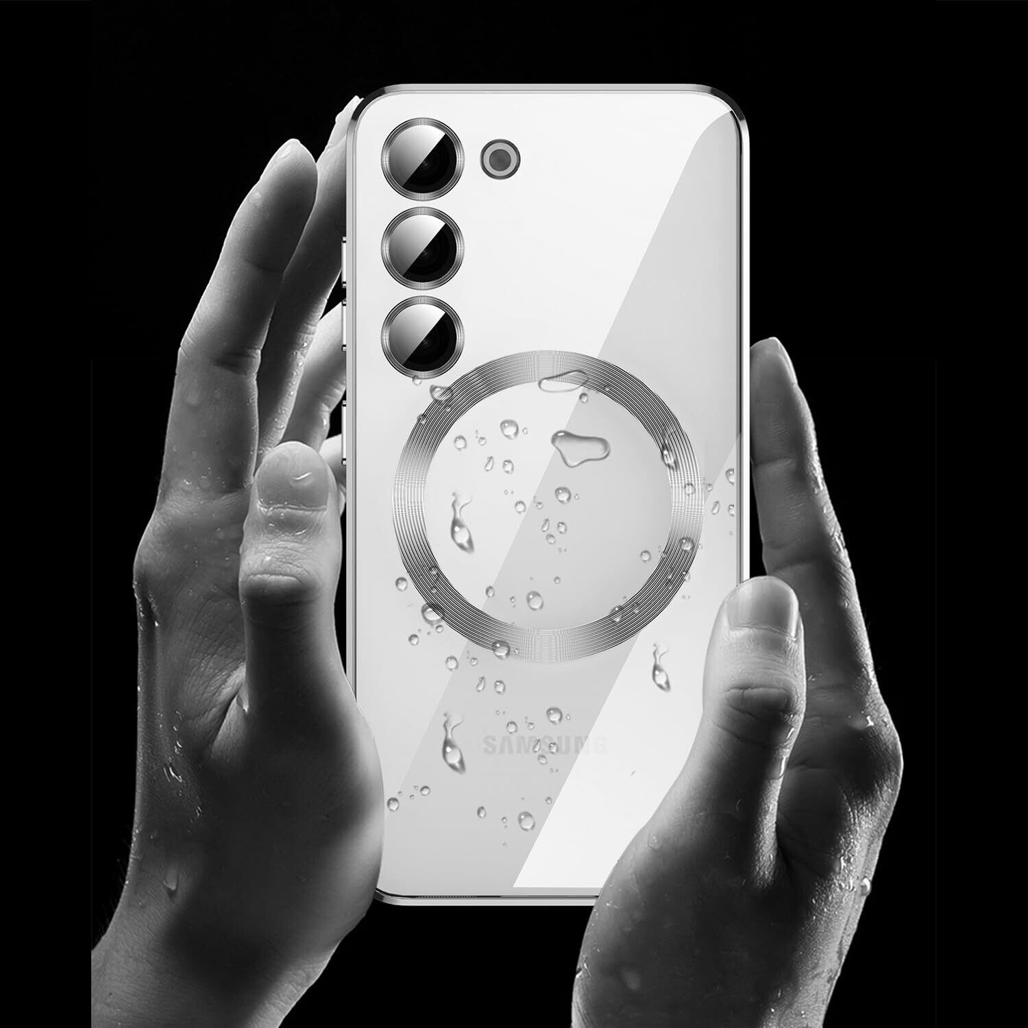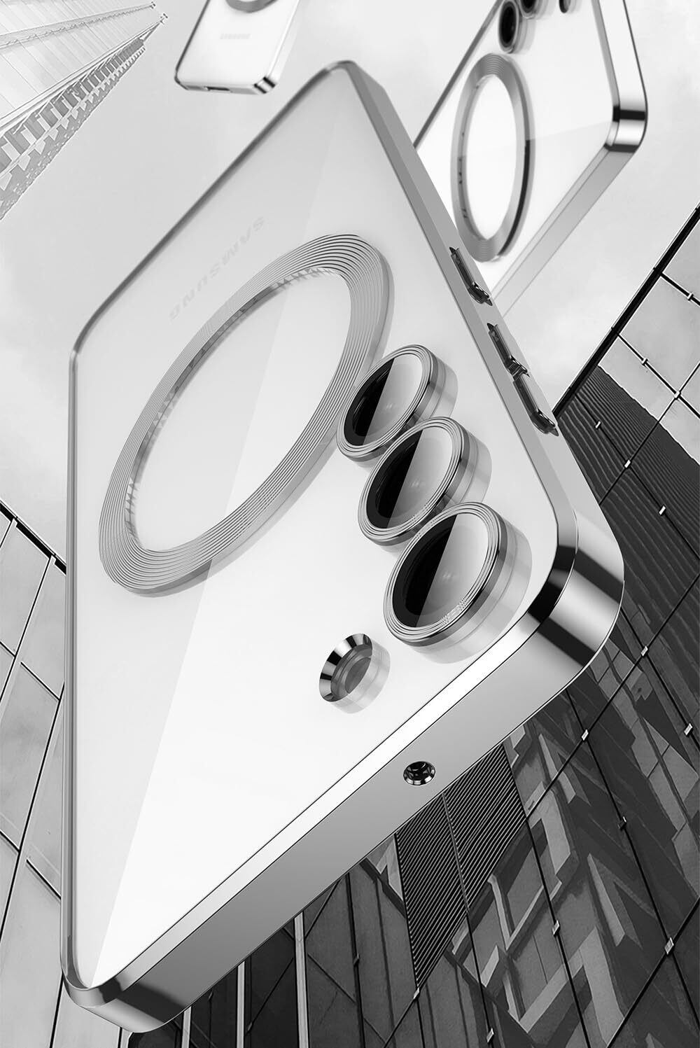 MuZiF Samsung Galaxy S24 Ultra 用 ケース クリア メッキ加工 Magsafe対応 永久磁石 レンズ保護 TPU ソフトケース 薄くて軽い 人気 耐衝撃 携帯カバー Galaxy S24 Ultra 用 クリアケース (Galaxy S24 Ultra,シルバー)