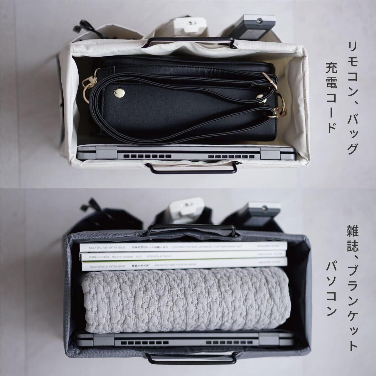 ストレリアミラド リビングラック マガジンラック デスク 机 テーブル ソファー 横 新聞 リビング オフィス カバン バッグ ブランケット 収納 ポケット3個 取っ手つき リモコン タブレット 持ち運び 折り畳み おしゃれ(アイボリー)